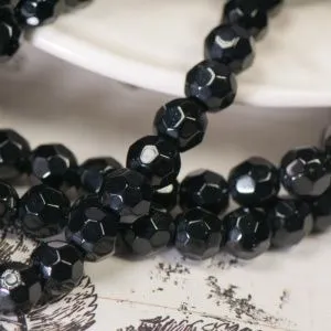 бусина, стекло 6, граненая, цвет черный, 6 мм