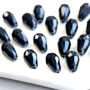 бусина "капля", граненая, стекло, цвет черный, 15х10 мм