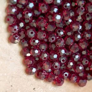бусина, стекло 4, граненая, цвет красный темный, 4 мм  (уп.30+/-5 шт)
