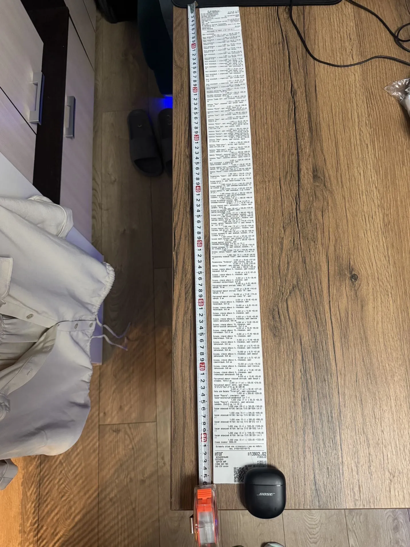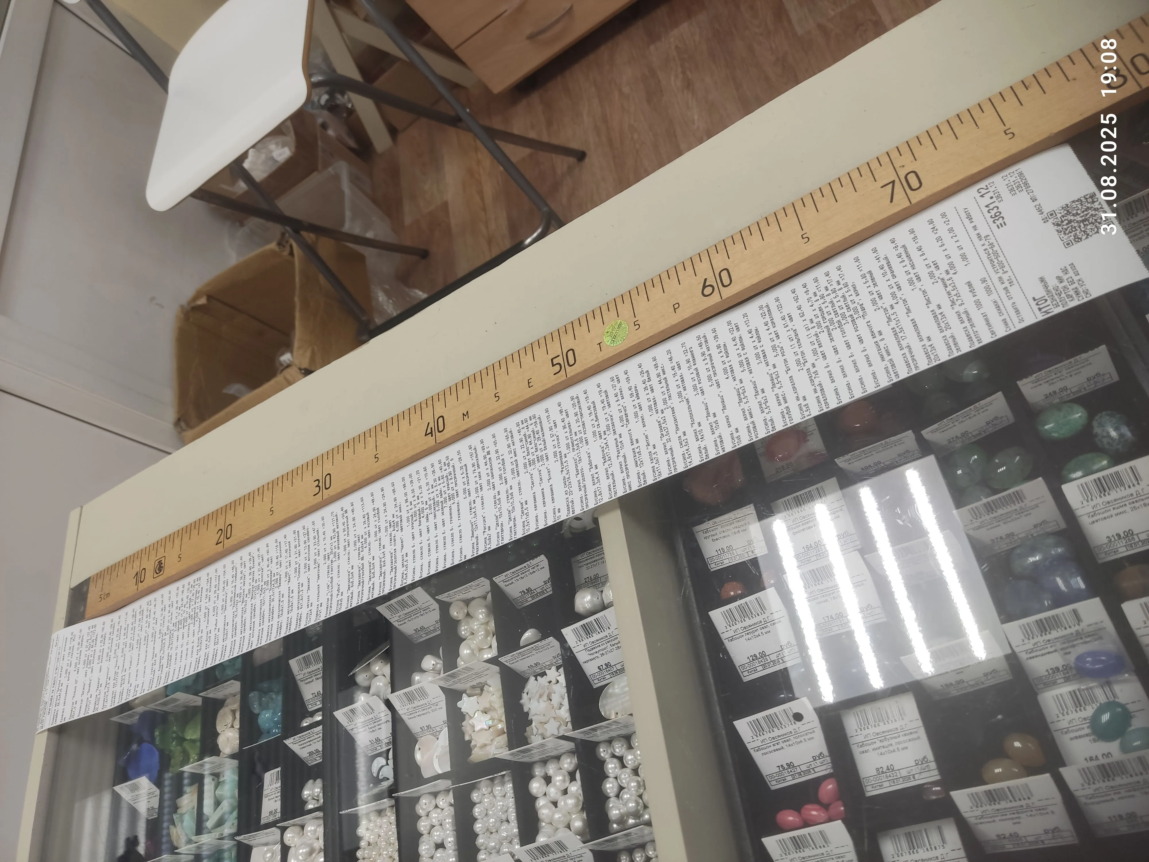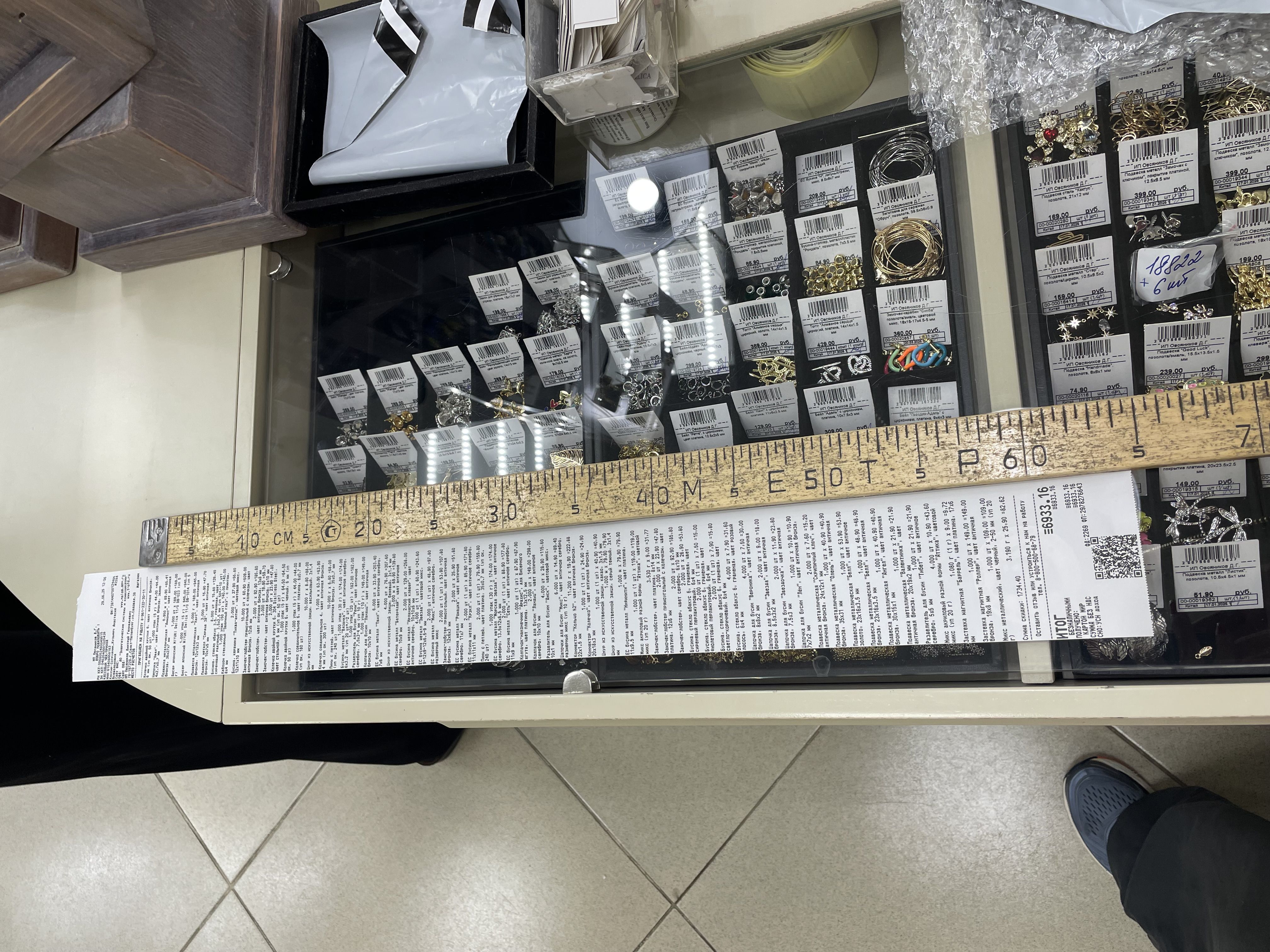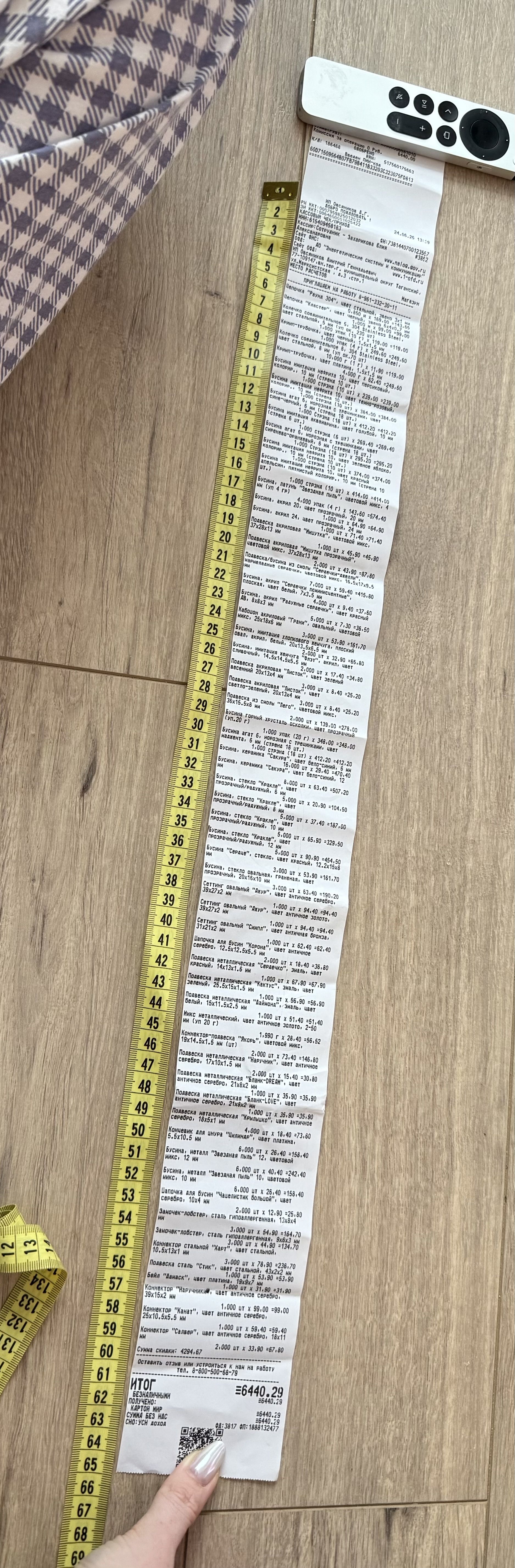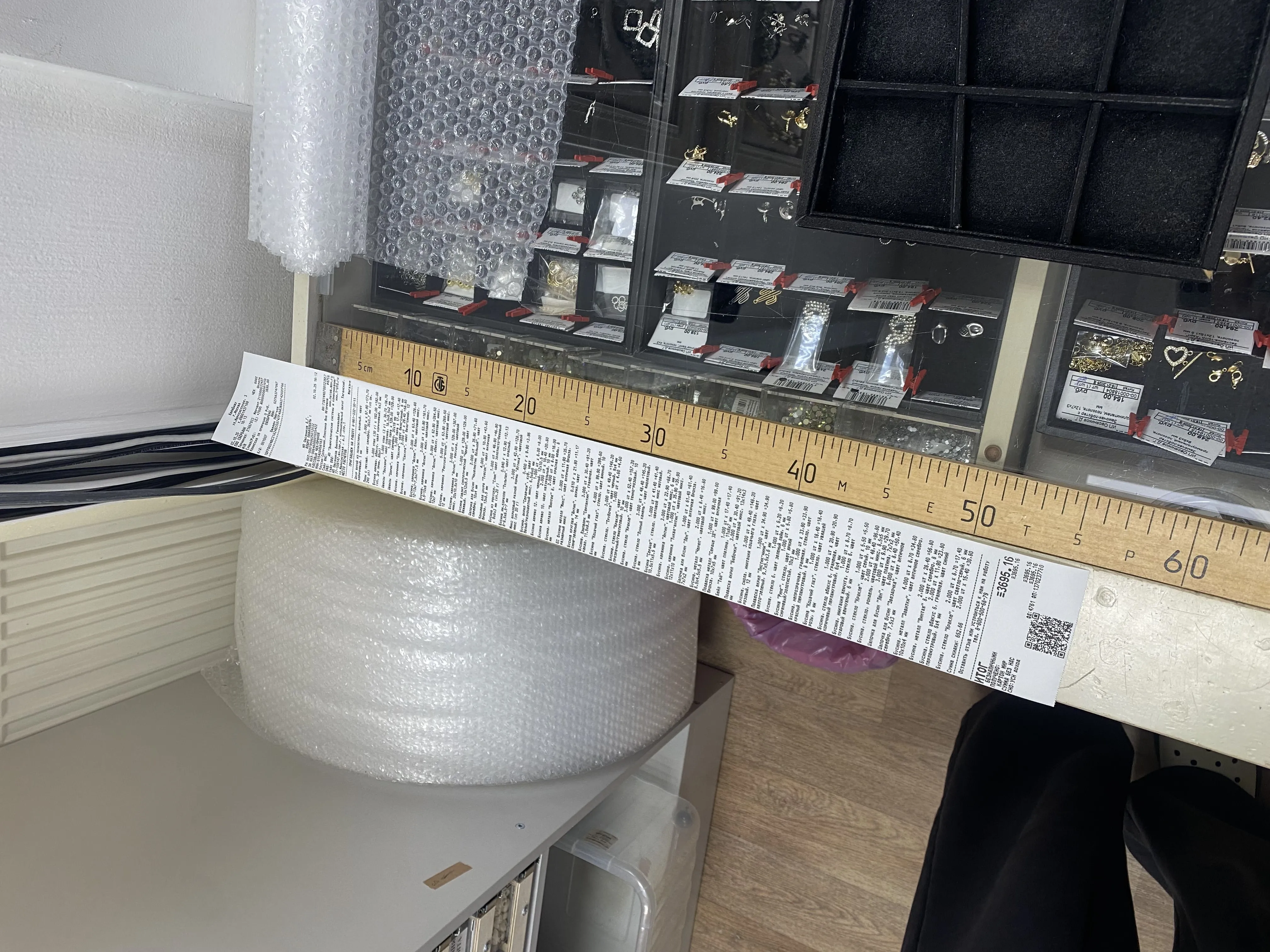Доброе утро! Была почти месяц назад в красивом городе Москва 11 октября. Была приятно удивлена такому большущему выбору разных бусин и фурнитур! (я попала в сказку?) Наверное я опоздала, но вот мой чек на 1метр 11см и 9мм (покупка была в 12:24 в точке на улице Марксистская 3с1), а, и меня зовут Света (линейка на фоне 20см) https://vk.com/id810939739