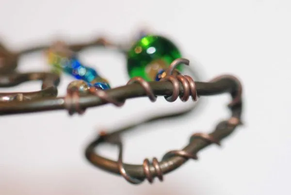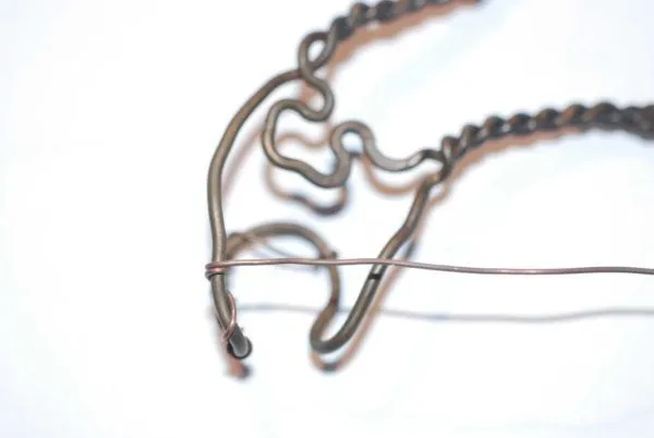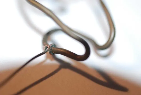 18. Обрезаю и закрепляю проволоку. На фото хорошо заметно, как начал стираться слой чернения с проволоки, а на каркасе он остался по-прежнему тёмный.