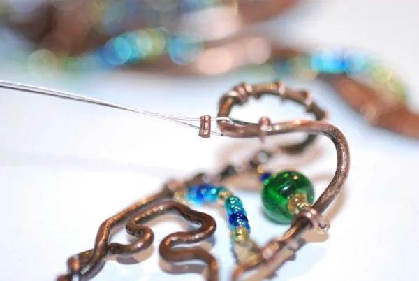 9. Продолжаю оплетать, достаю бисер и бусины.