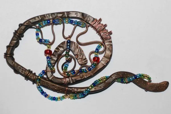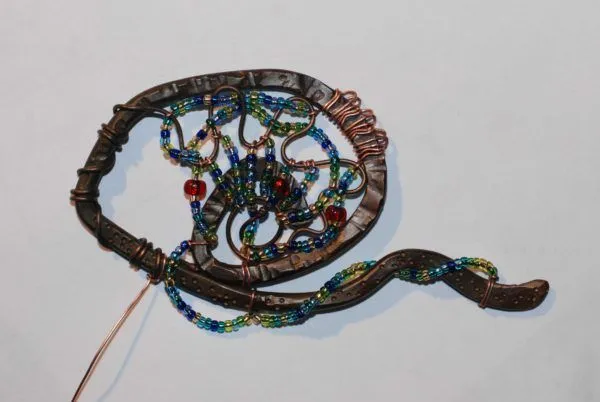3. Каркас панциря гну из медной трубочки, обтачиваю концы напильником, отбиваю молотком. “Рожки” у улитки также немного отбиваю.