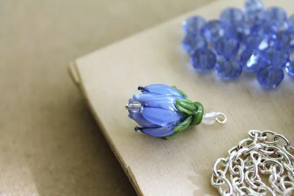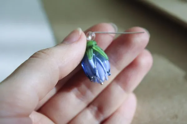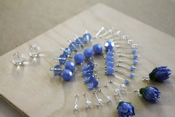 1. Сначала нам необходимо подготовить бусины-бутончики. А именно, нанизать их на пин и закрутить петлю сверху. Сделать своего рода подвесочки.