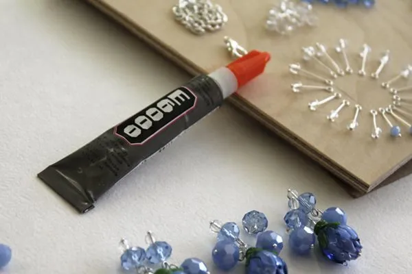10. бусинки под воздействием силы тяжести будут сползать вниз, и вверху останутся голые пины. Решить эту проблему можно с помощью универсального ювелирного клея Е6000.