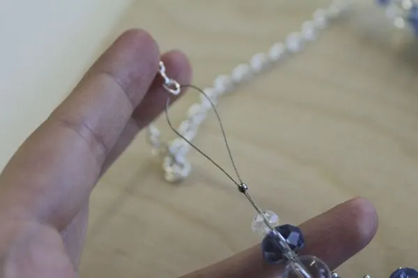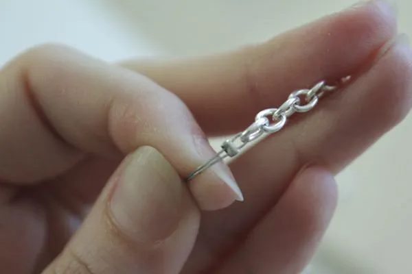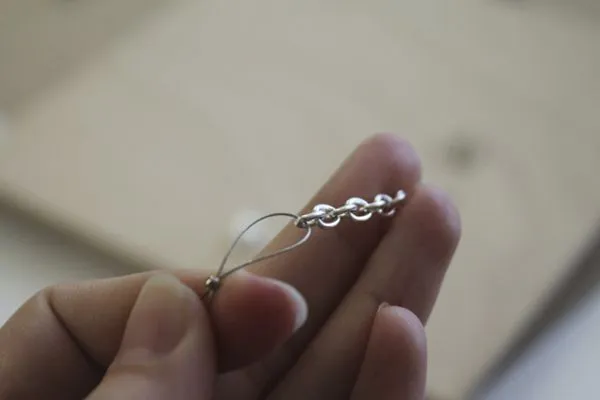 21. нам необходимо закрепить ювелирный тросик. Одним “узлом” мы прикрепим тросик к цепочке.
