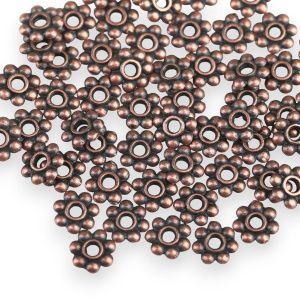 1. Начните собирать бусины на тросик, разделяя их шапочками.