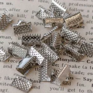 1. Нарезаем нити – 5 шт. по 75 см. Закрепляем по одному концу каждой нити внутри зажима-концевика с помощью клея и плоскогубцев.