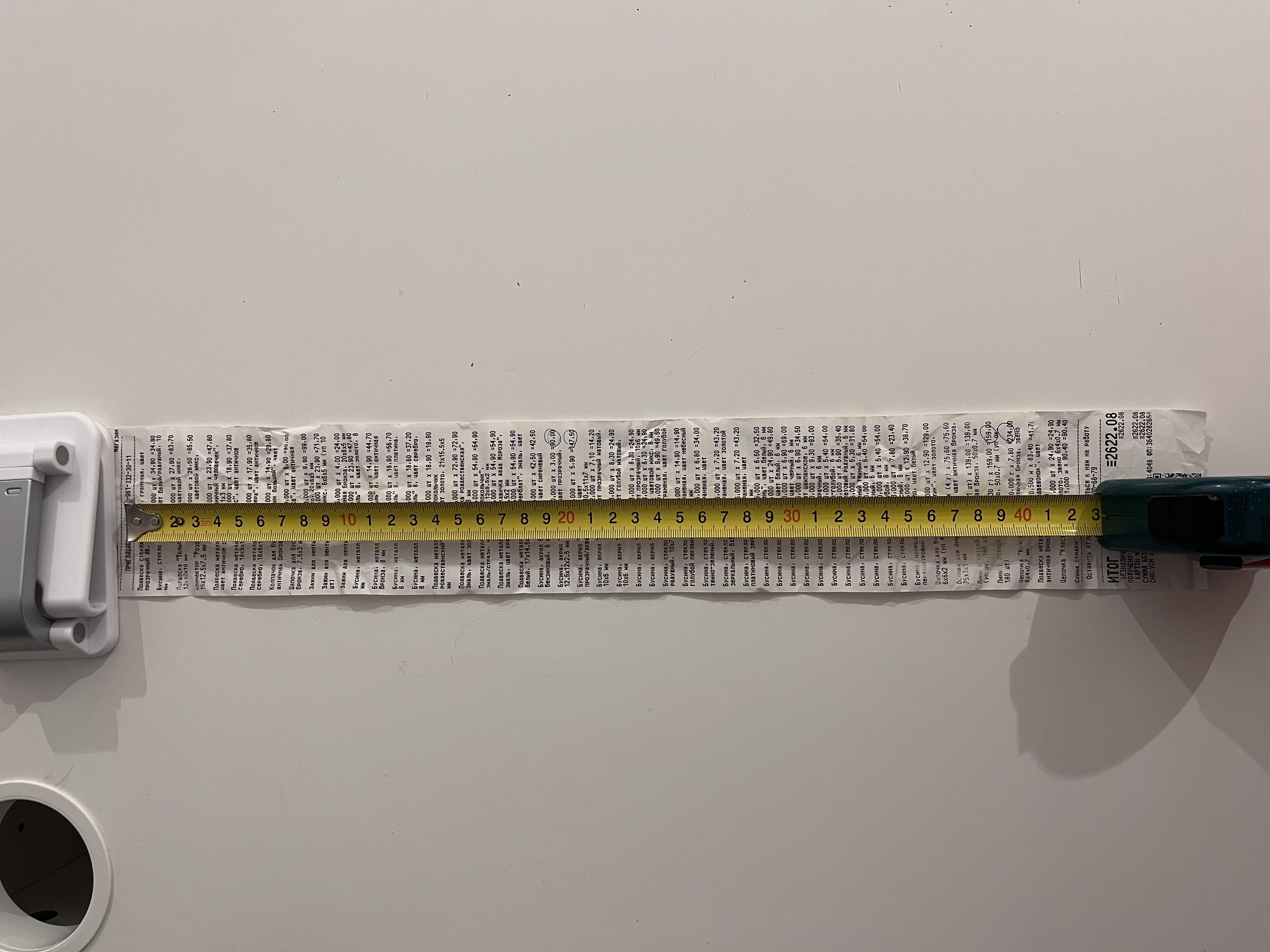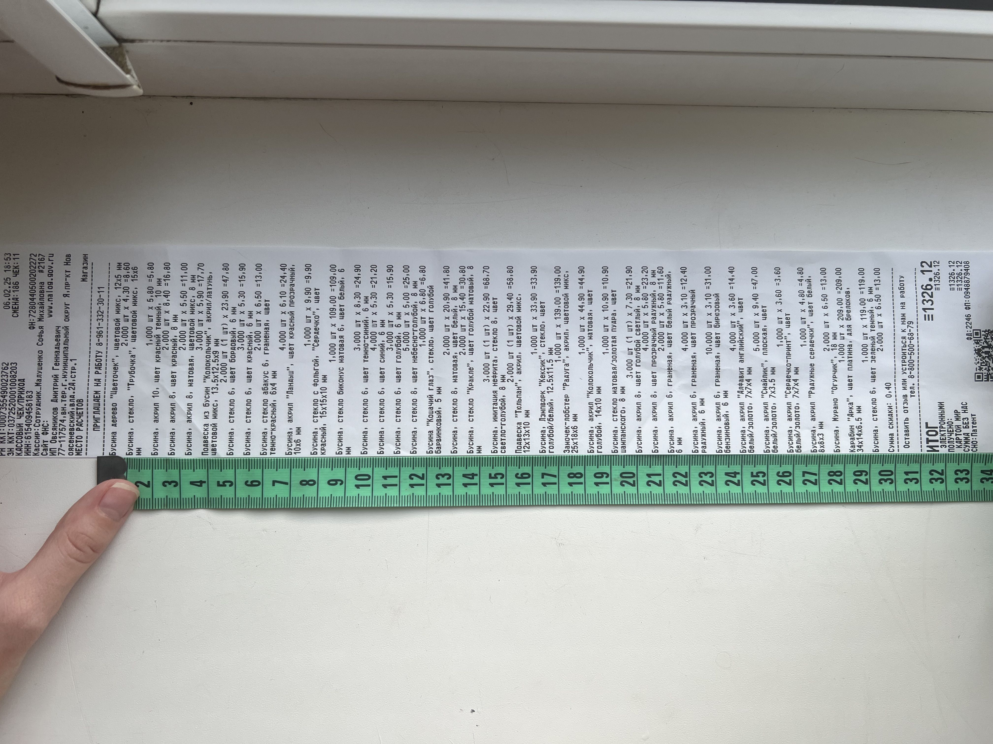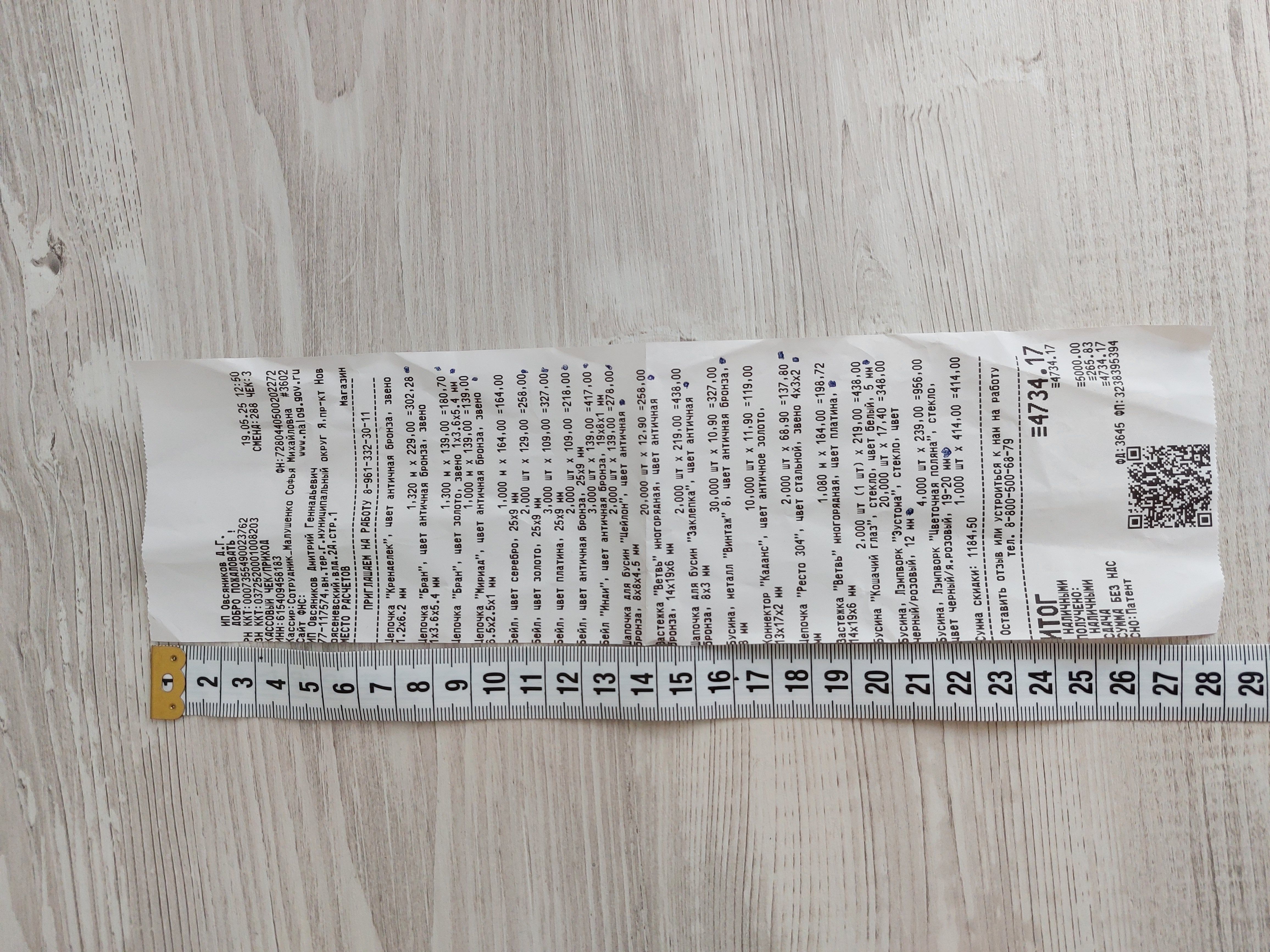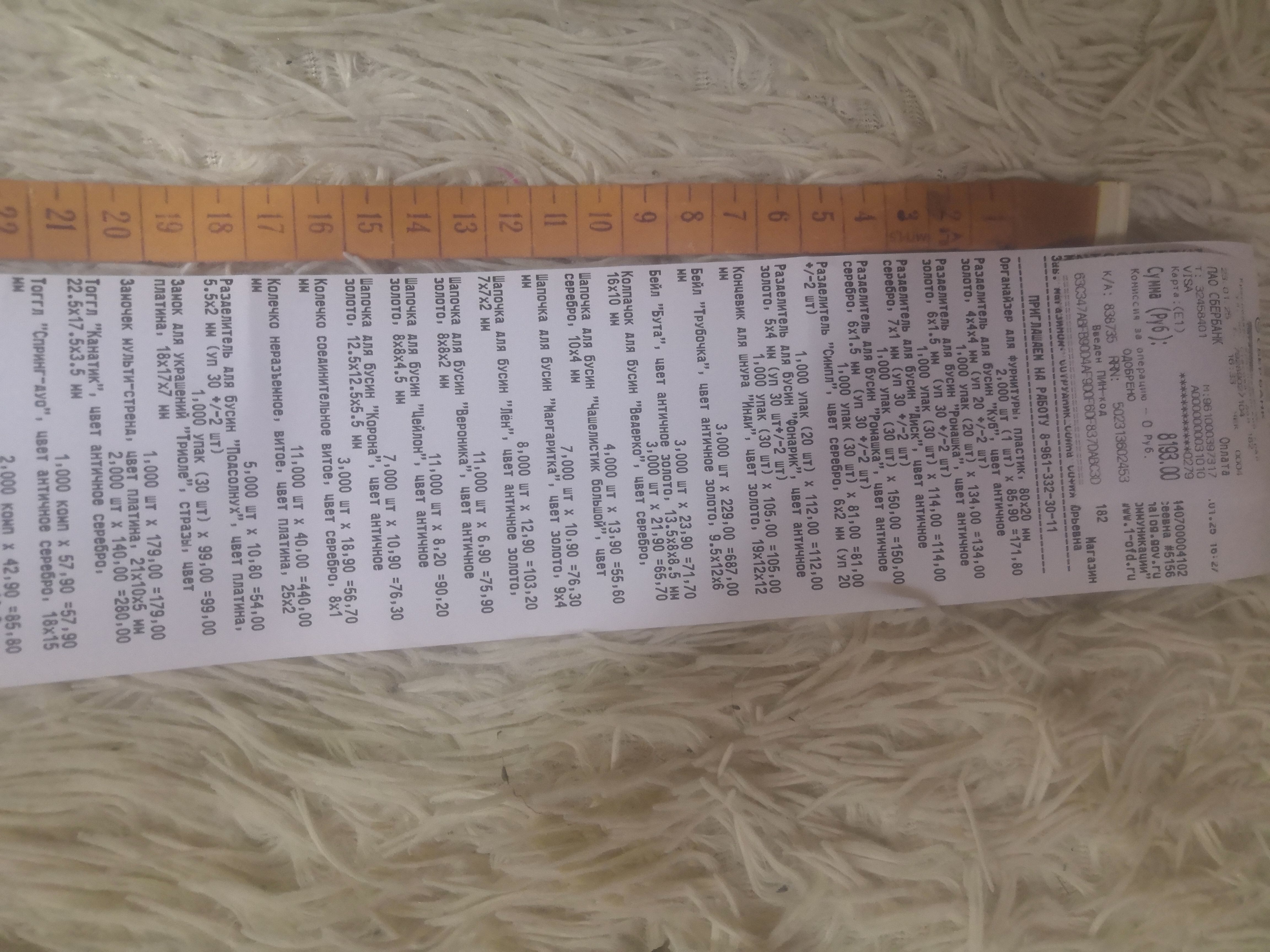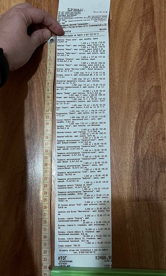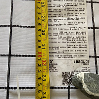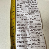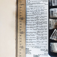 2. Измерьте длину вашего чека и сфотографируйте его рядом с линейкой или метром. Обратите внимание, что экваринговая часть чека (верхняя часть чека до обозначения ИП, печатается не всегда) и купон за покупку в конце чека не учитываются!