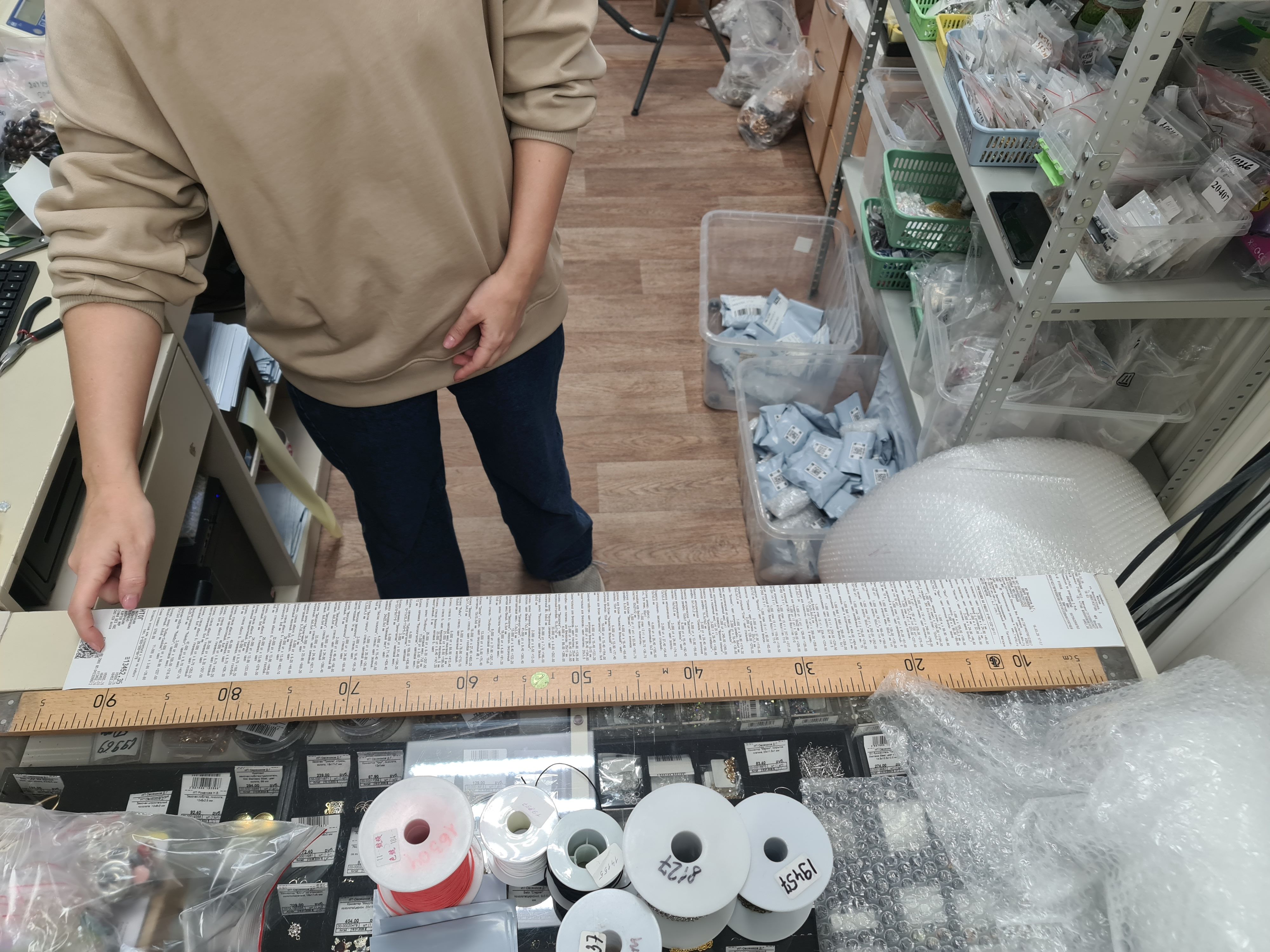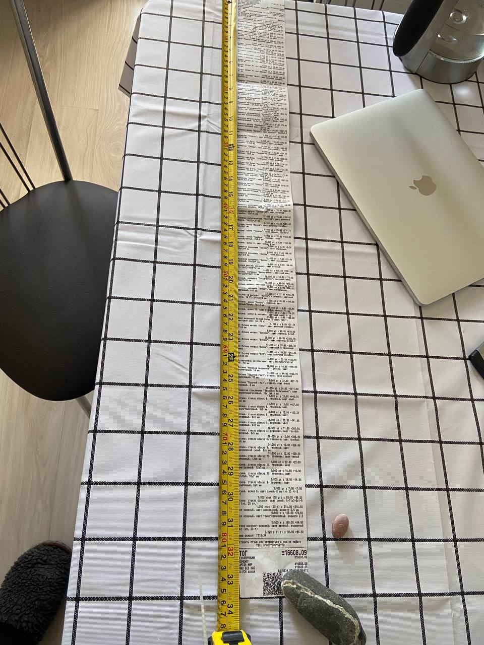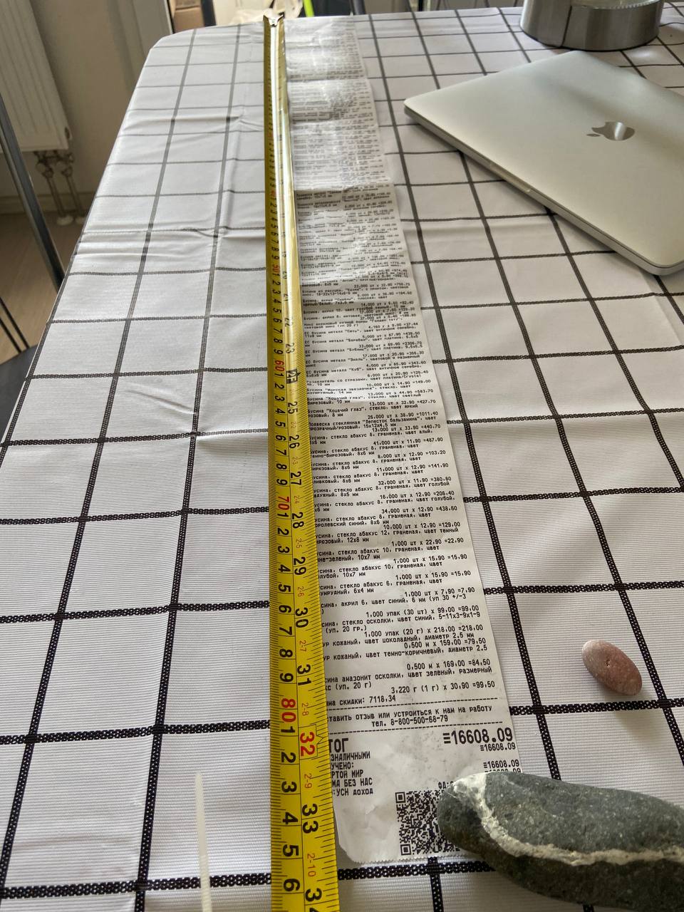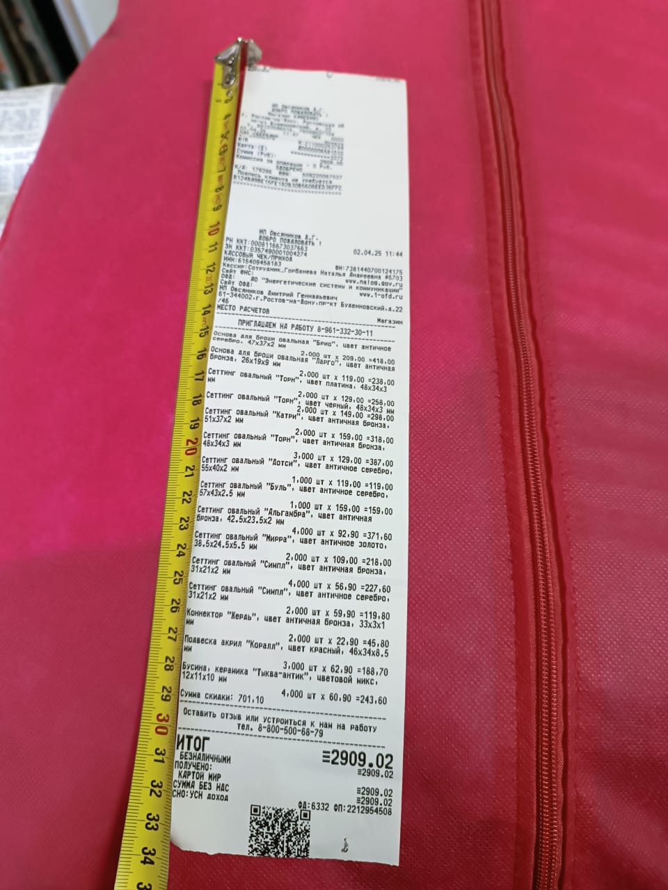 2. Измерьте длину вашего чека и сфотографируйте его рядом с линейкой или метром. Обратите внимание, что экваринговая часть чека (верхняя часть чека до обозначения ИП, печатается не всегда) и купон за покупку в конце чека не учитываются!