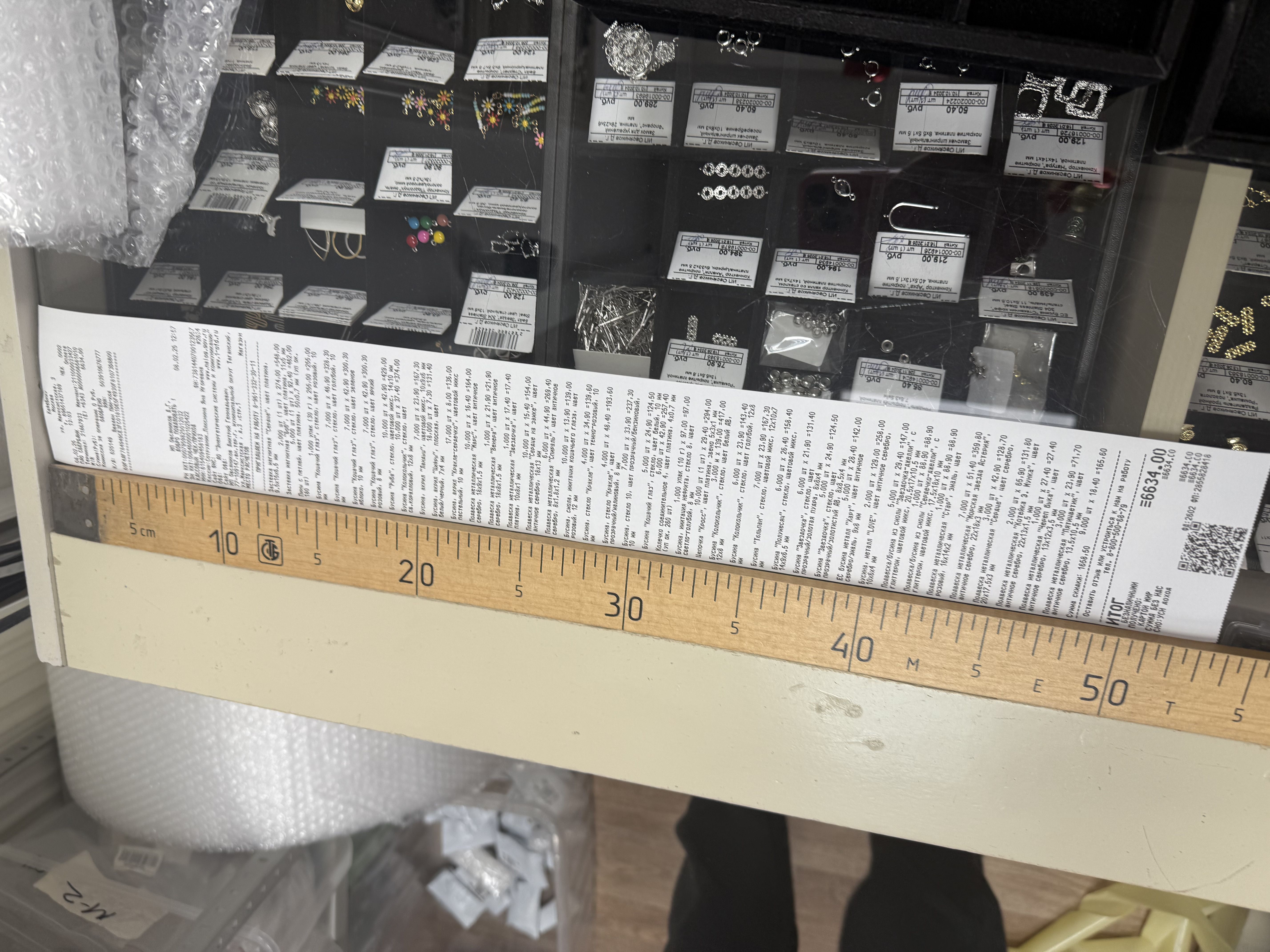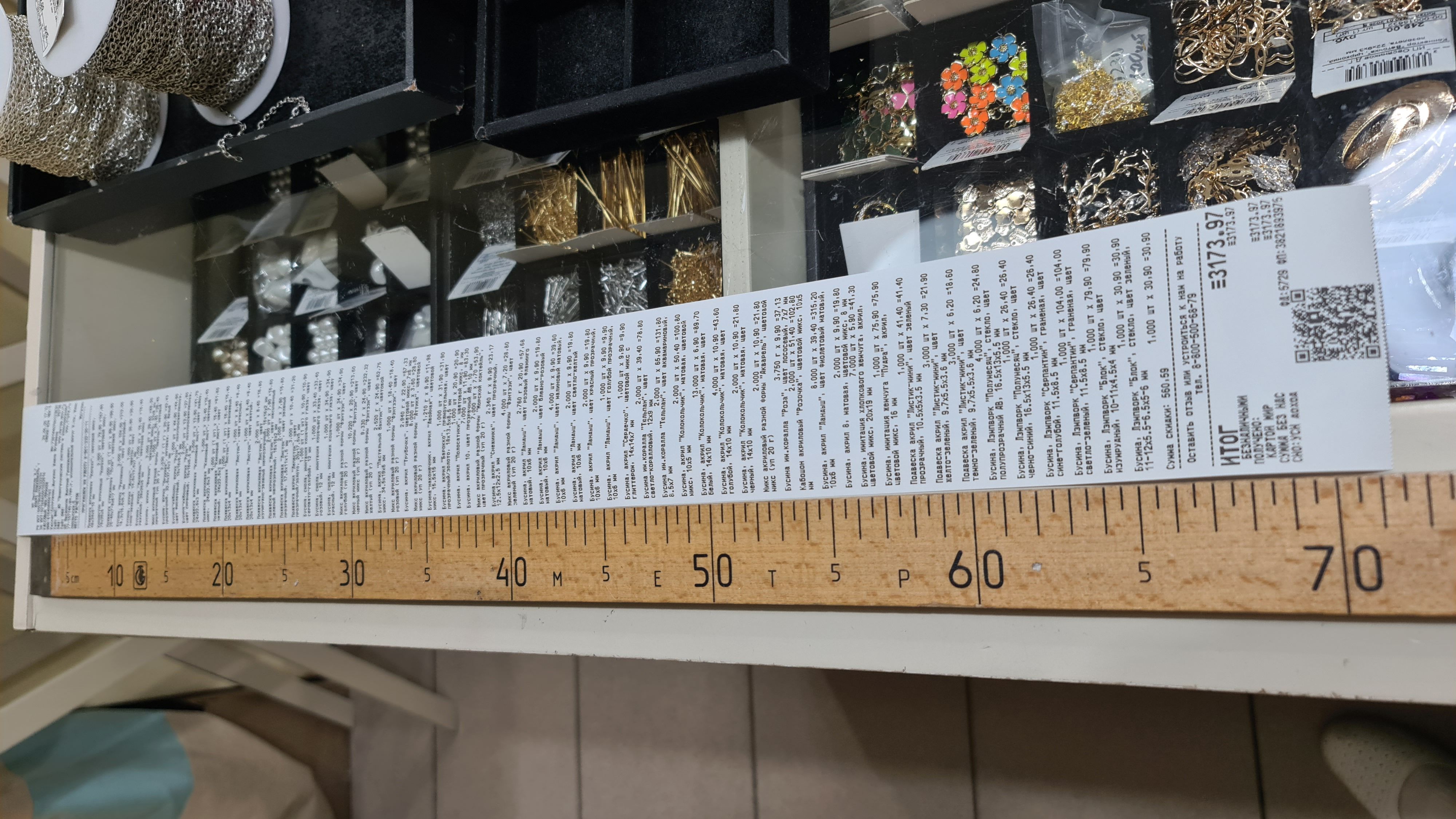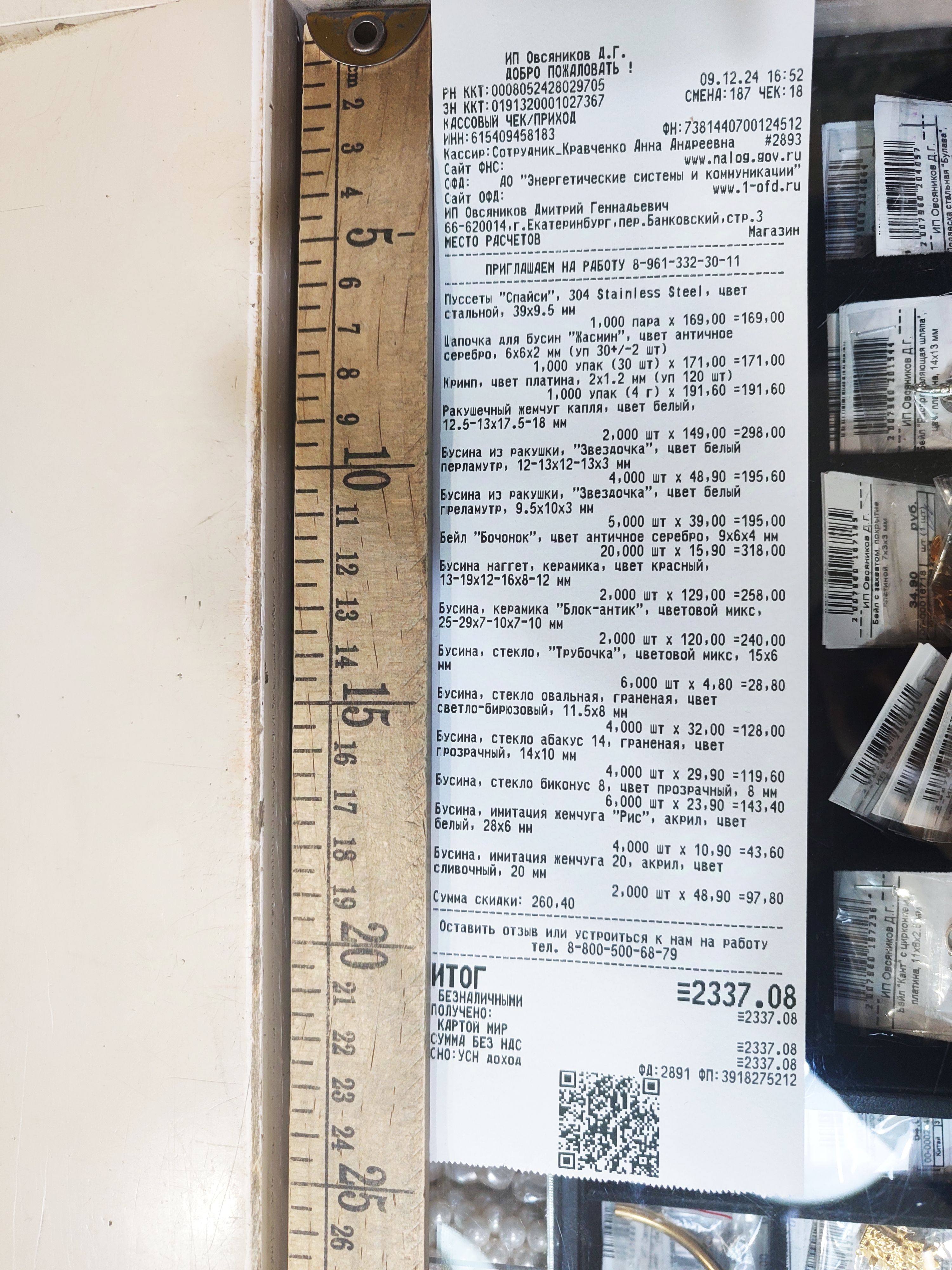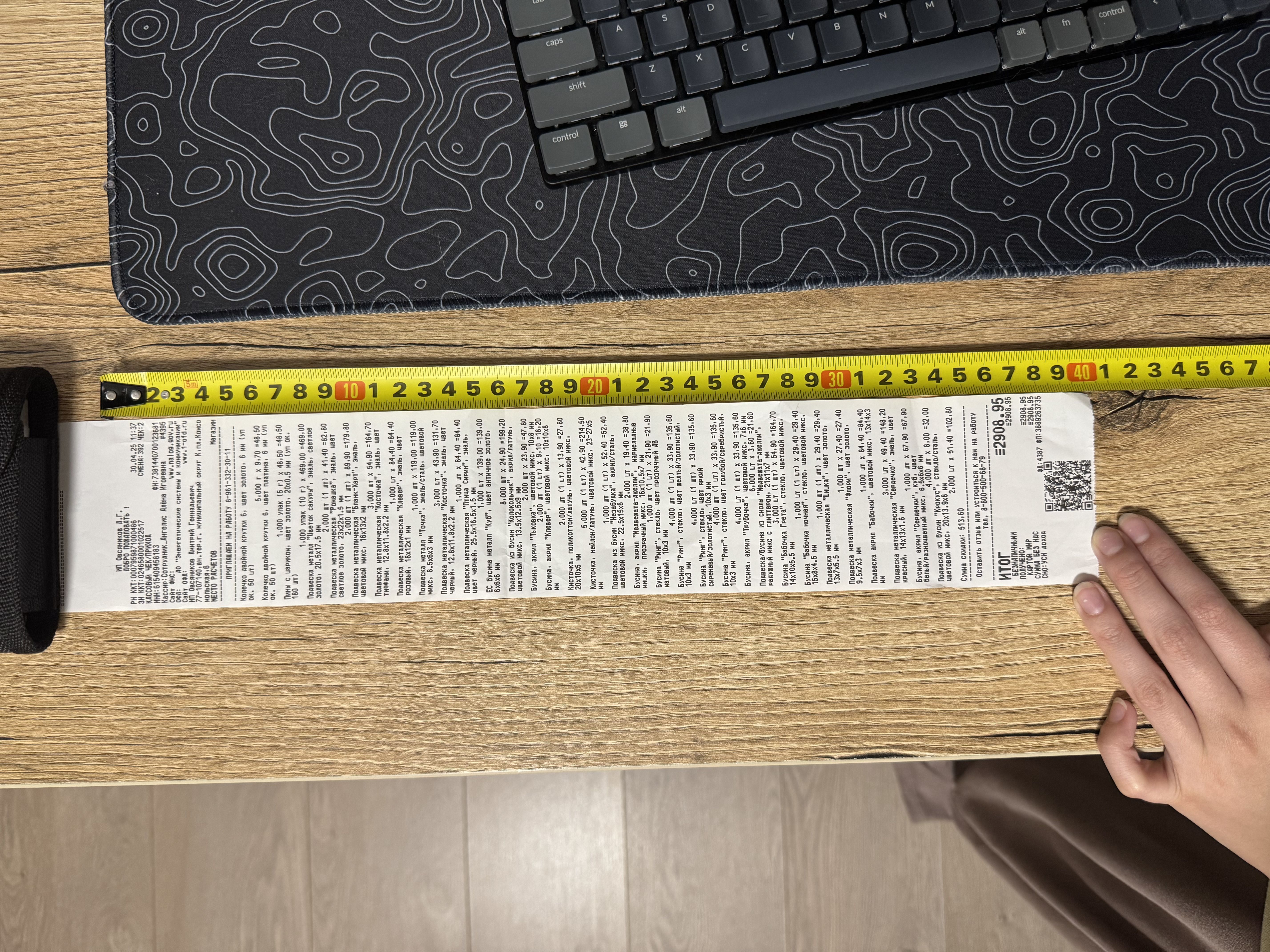 2. Измерьте длину вашего чека и сфотографируйте его рядом с линейкой или метром. Обратите внимание, что экваринговая часть чека (верхняя часть чека до обозначения ИП, печатается не всегда) и купон за покупку в конце чека не учитываются!