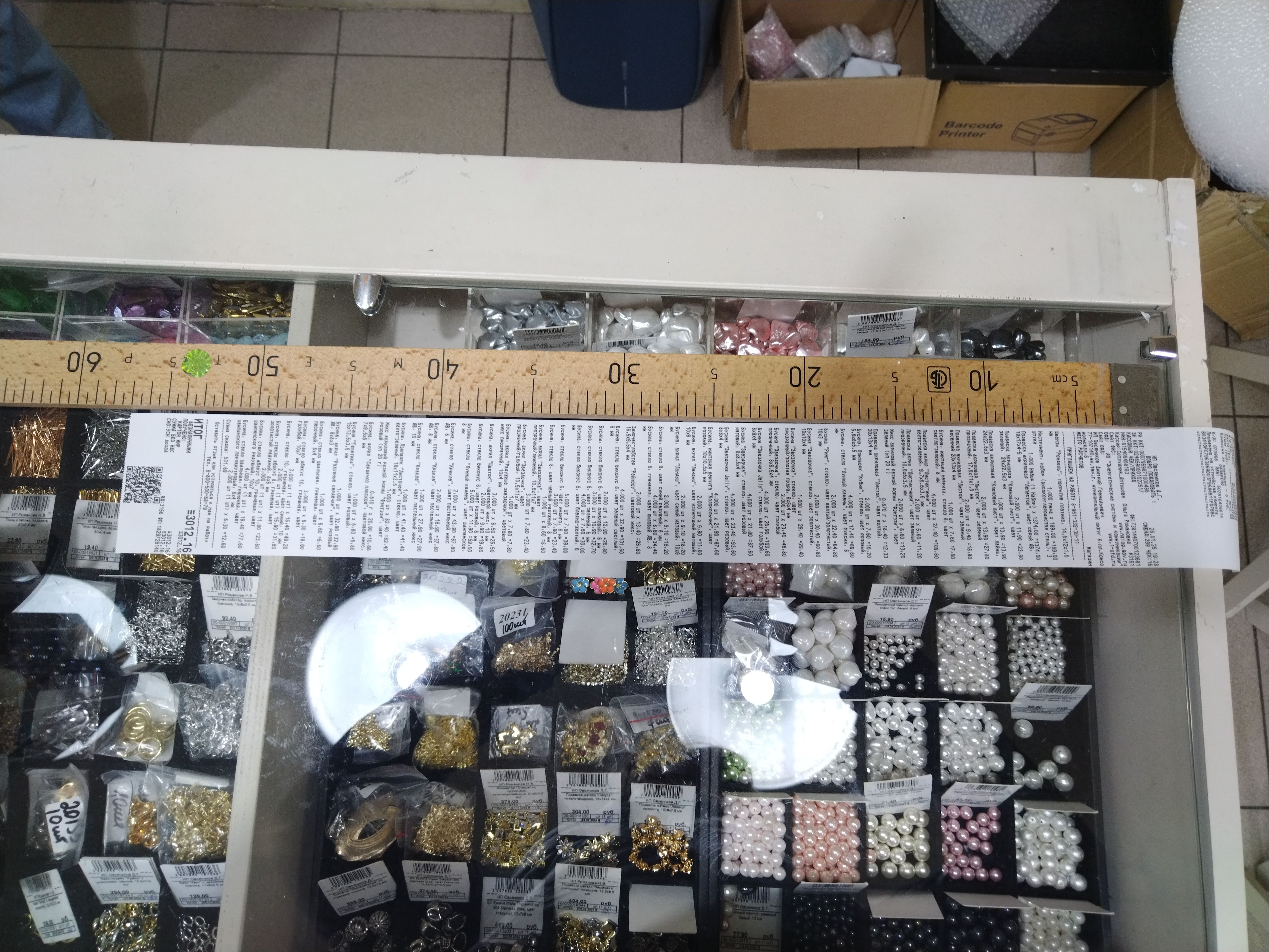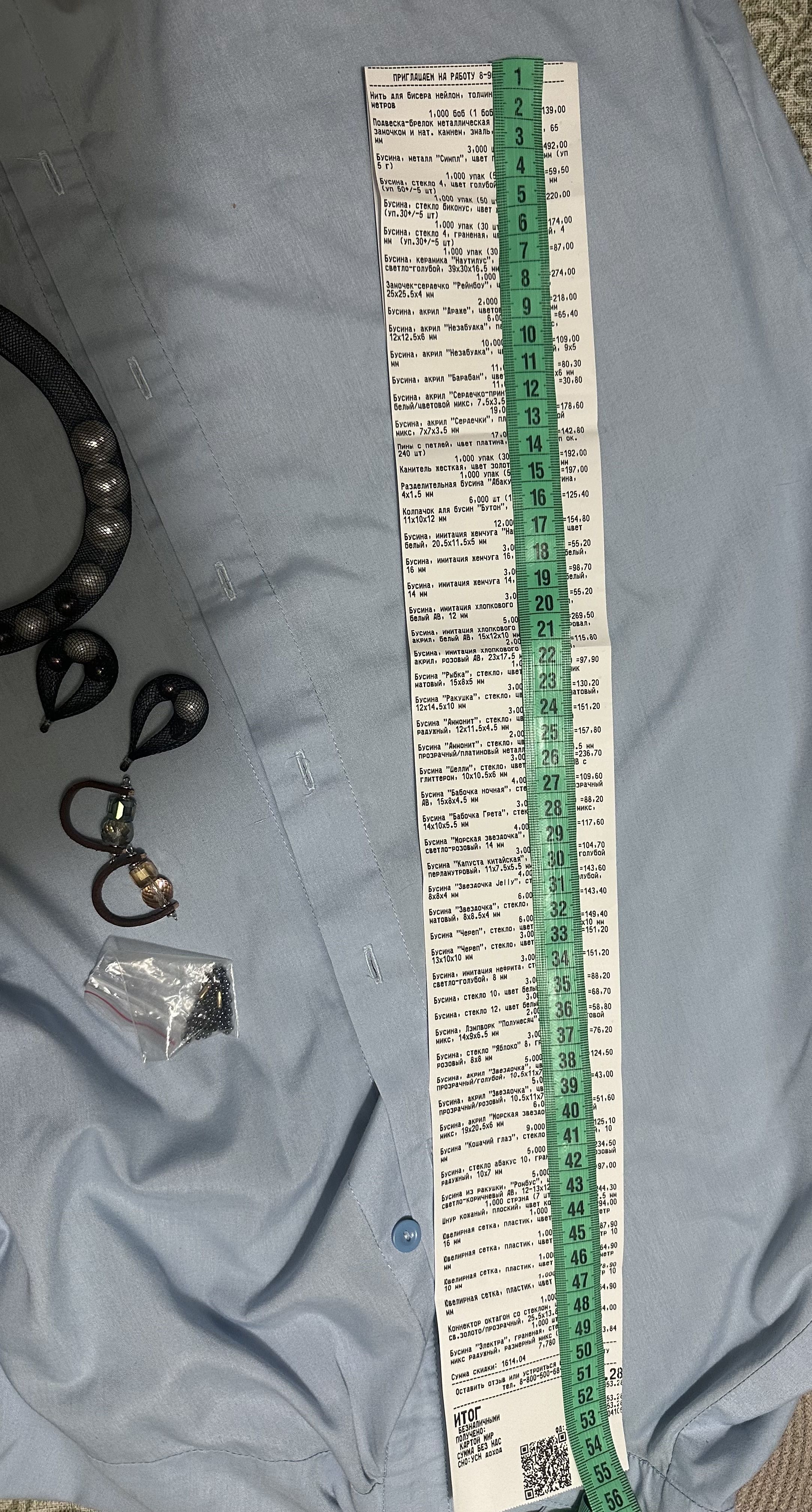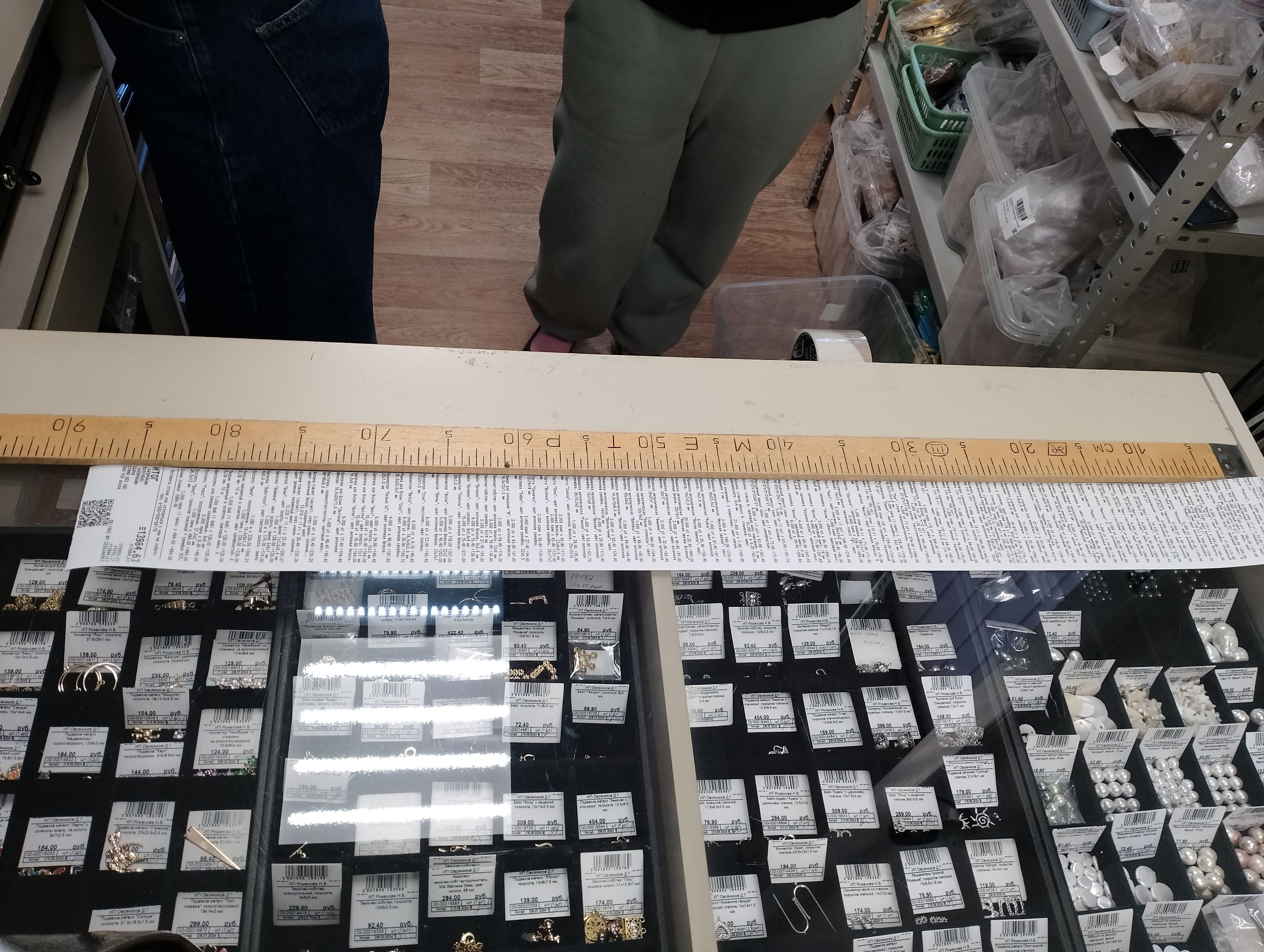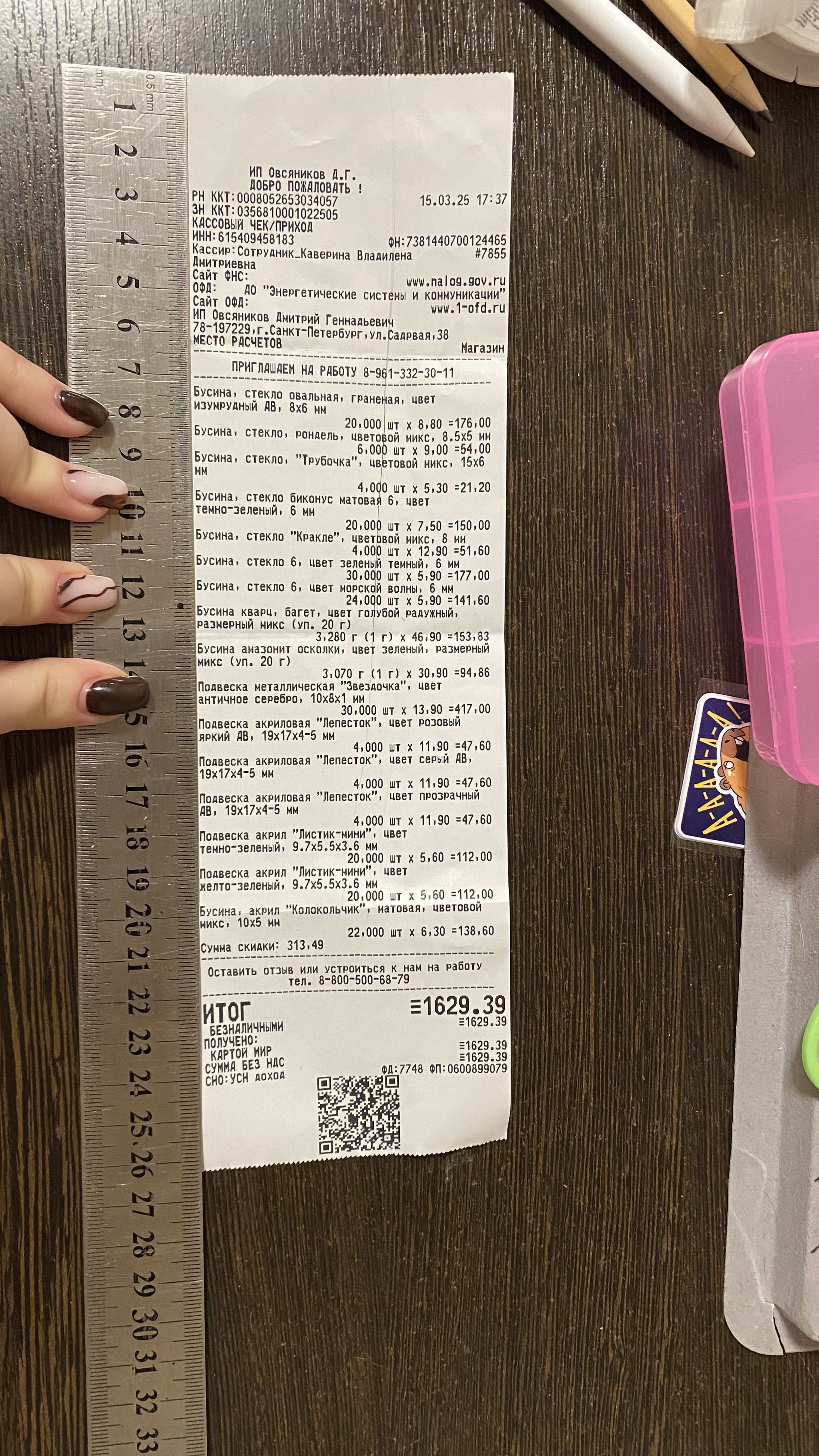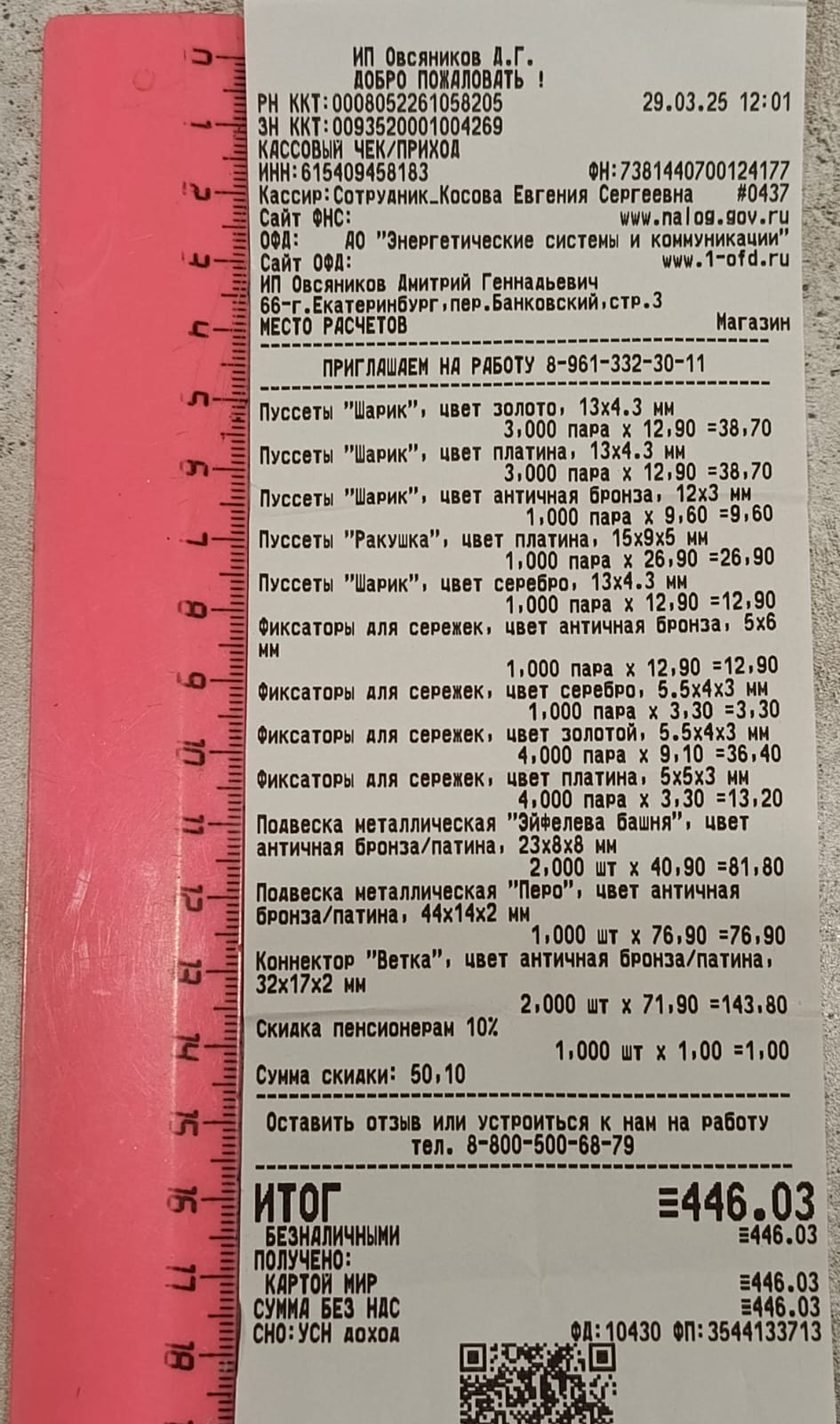 2. Измерьте длину вашего чека и сфотографируйте его рядом с линейкой или метром. Обратите внимание, что экваринговая часть чека (верхняя часть чека до обозначения ИП, печатается не всегда) и купон за покупку в конце чека не учитываются!
