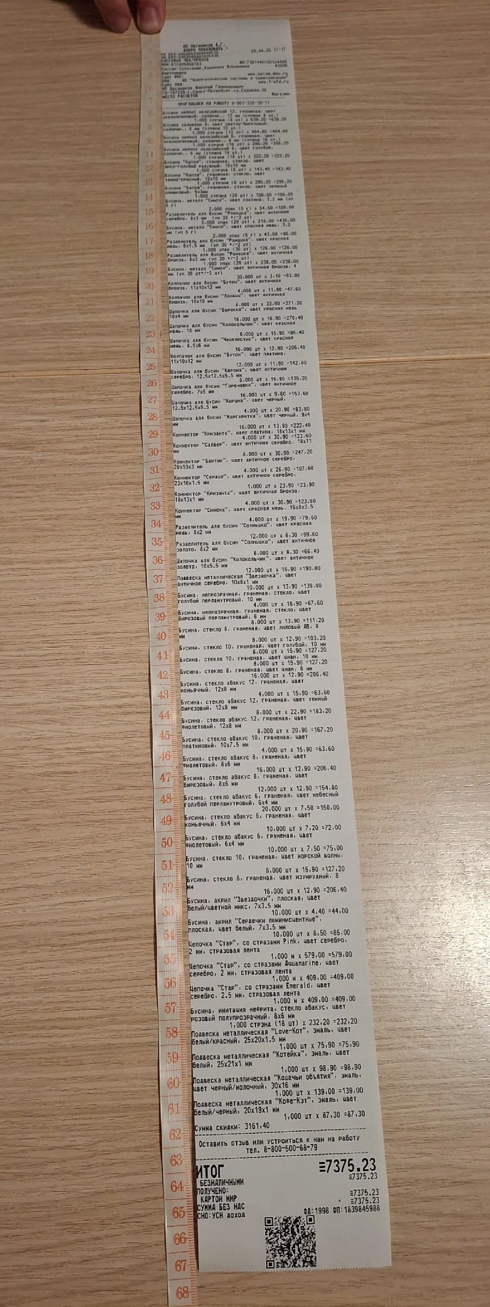 Айгуль https://vk.com/silkinasaa 30.04.25 Чек: 40 см Магазин на Комсомольской