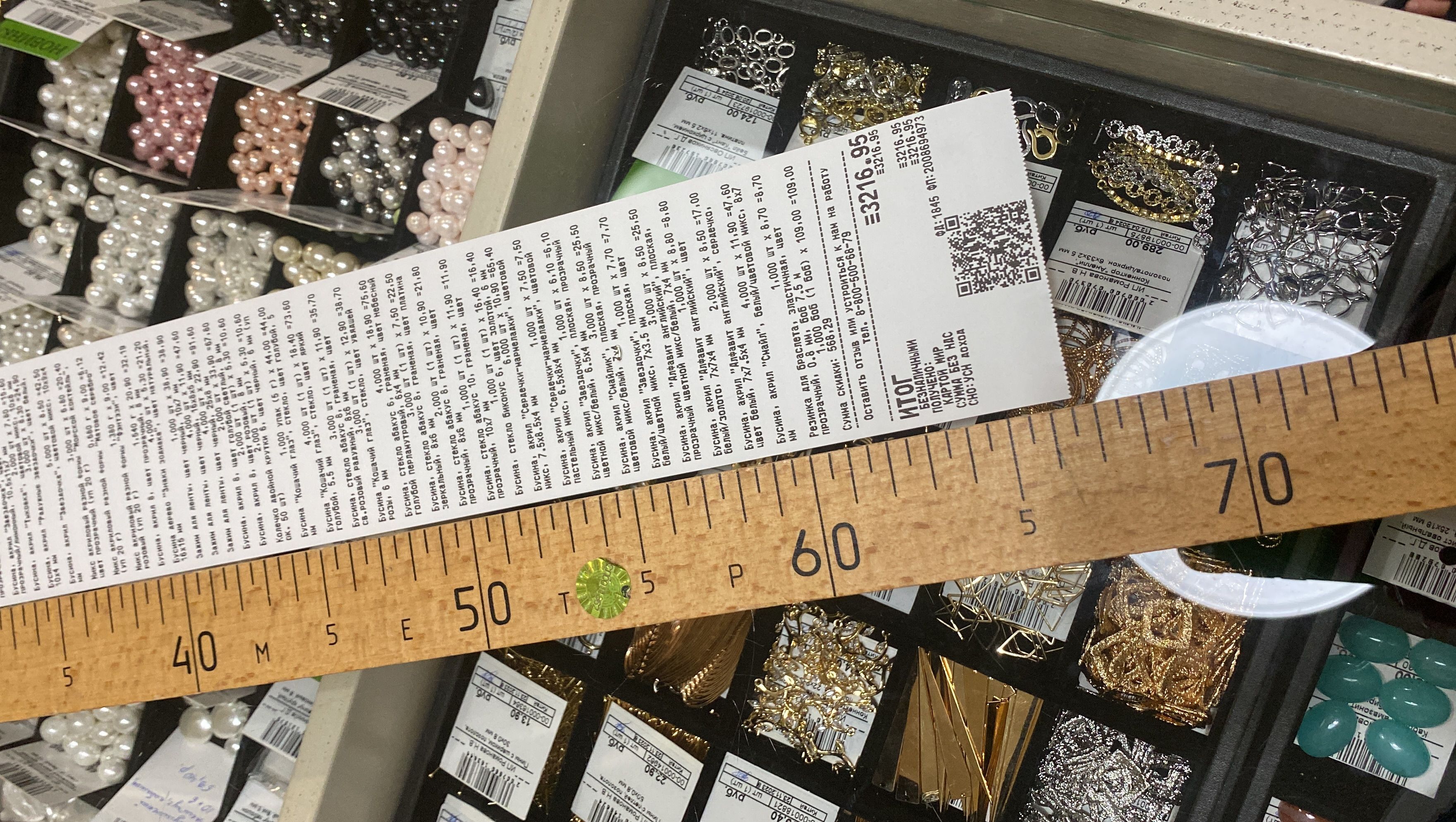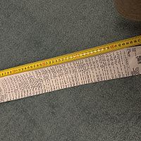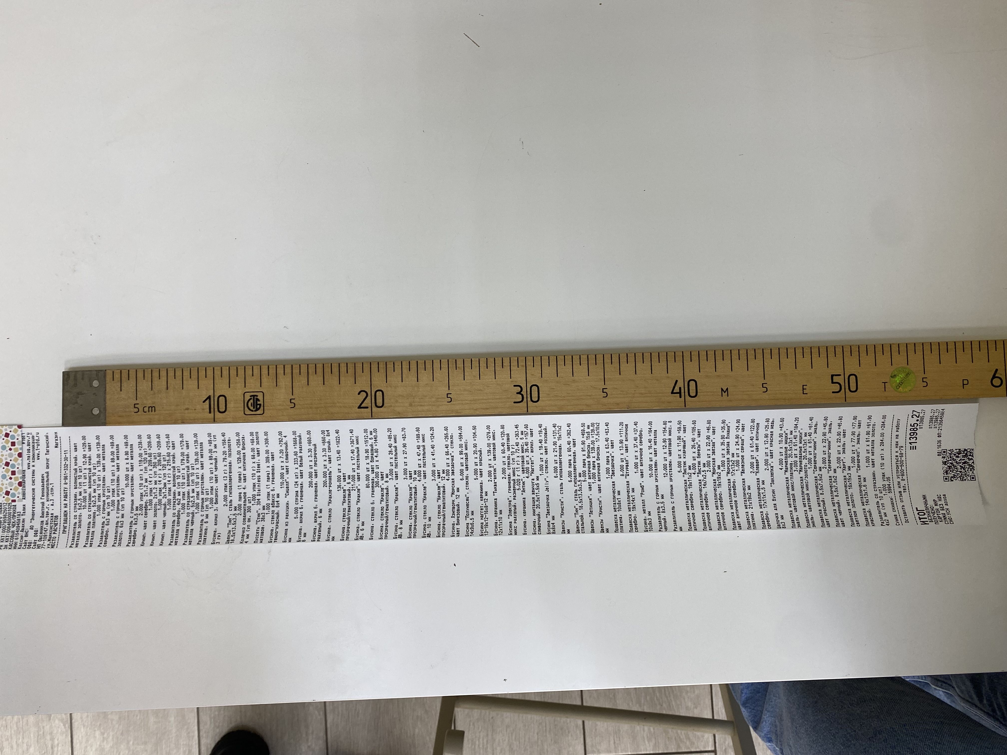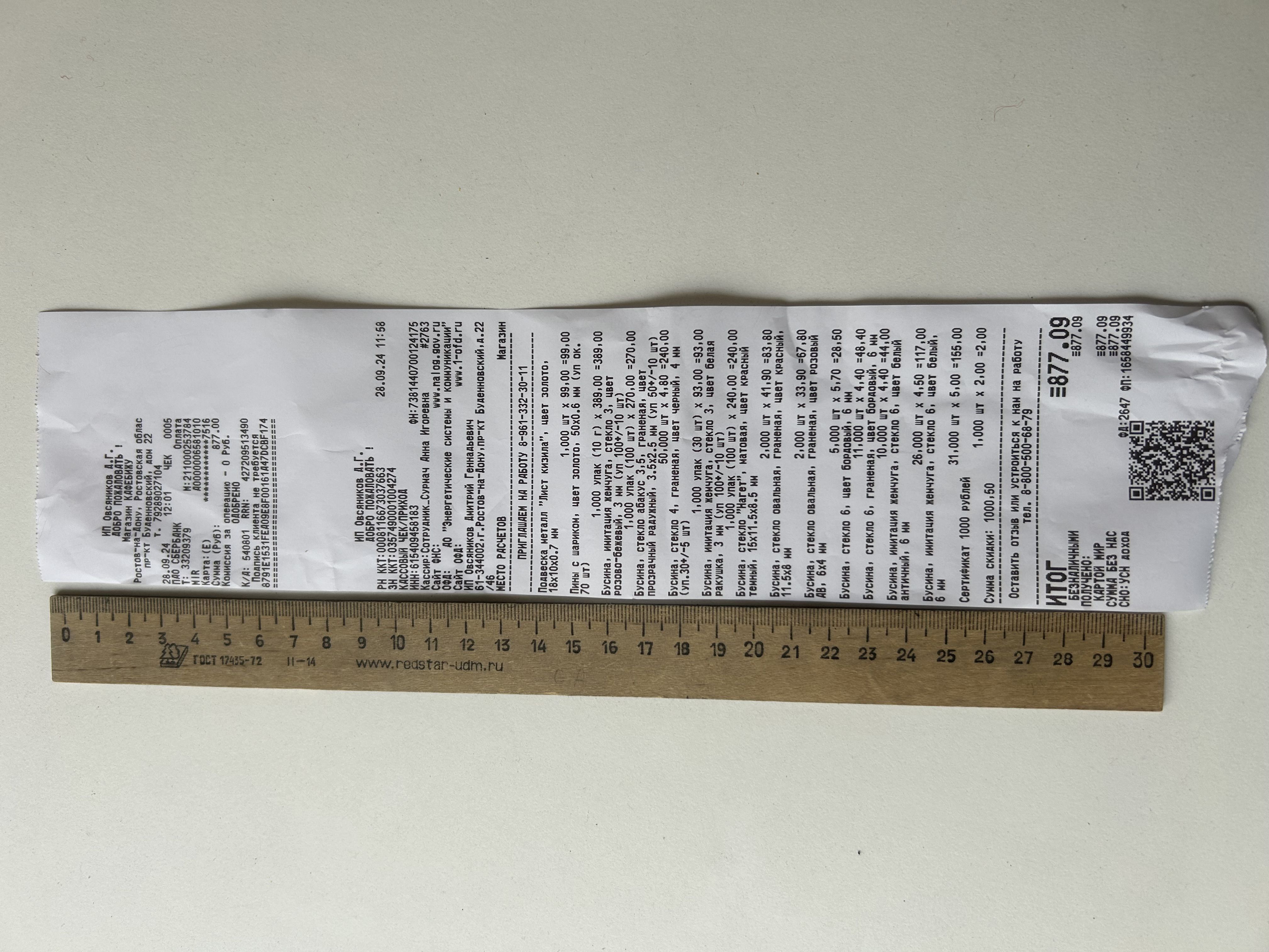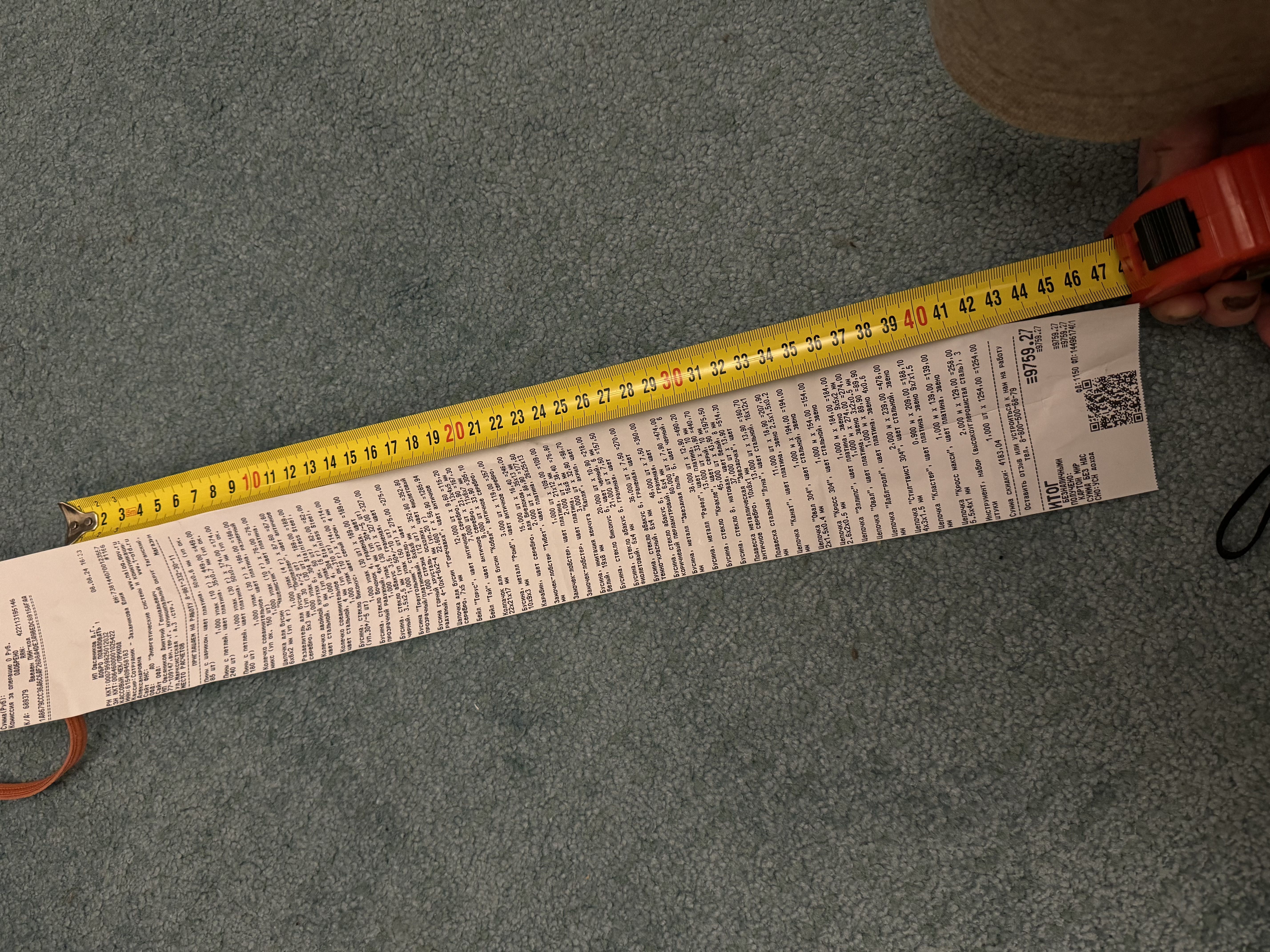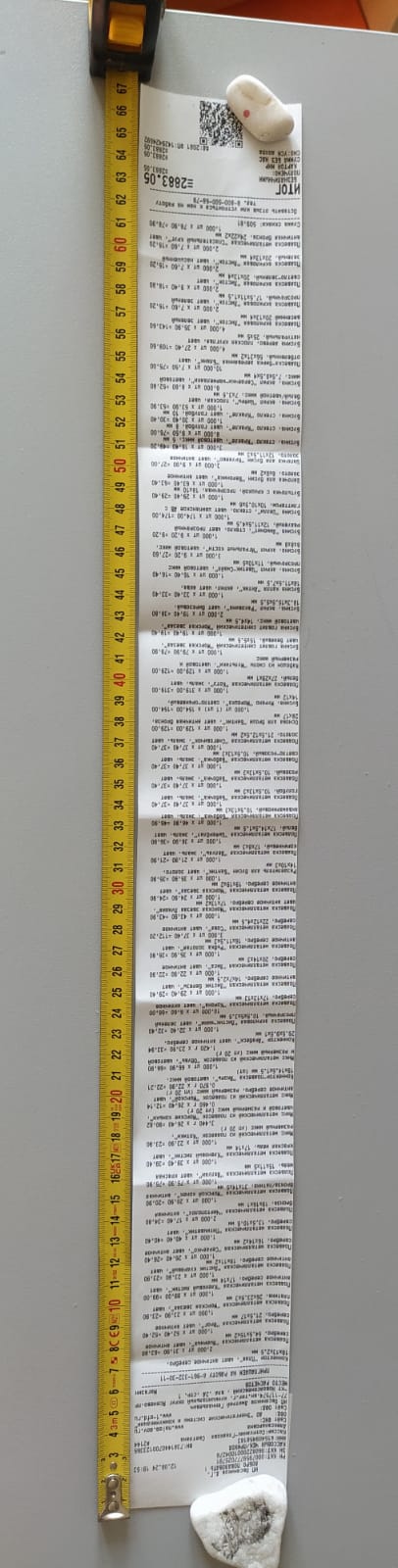 2. Измерьте длину вашего чека и сфотографируйте его рядом с линейкой или метром. Обратите внимание, что экваринговая часть чека (верхняя часть чека до обозначения ИП, печатается не всегда) и купон за покупку в конце чека не учитываются!