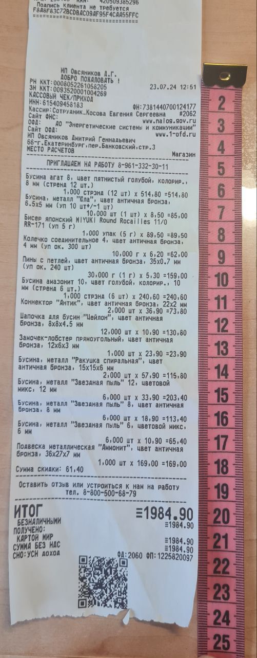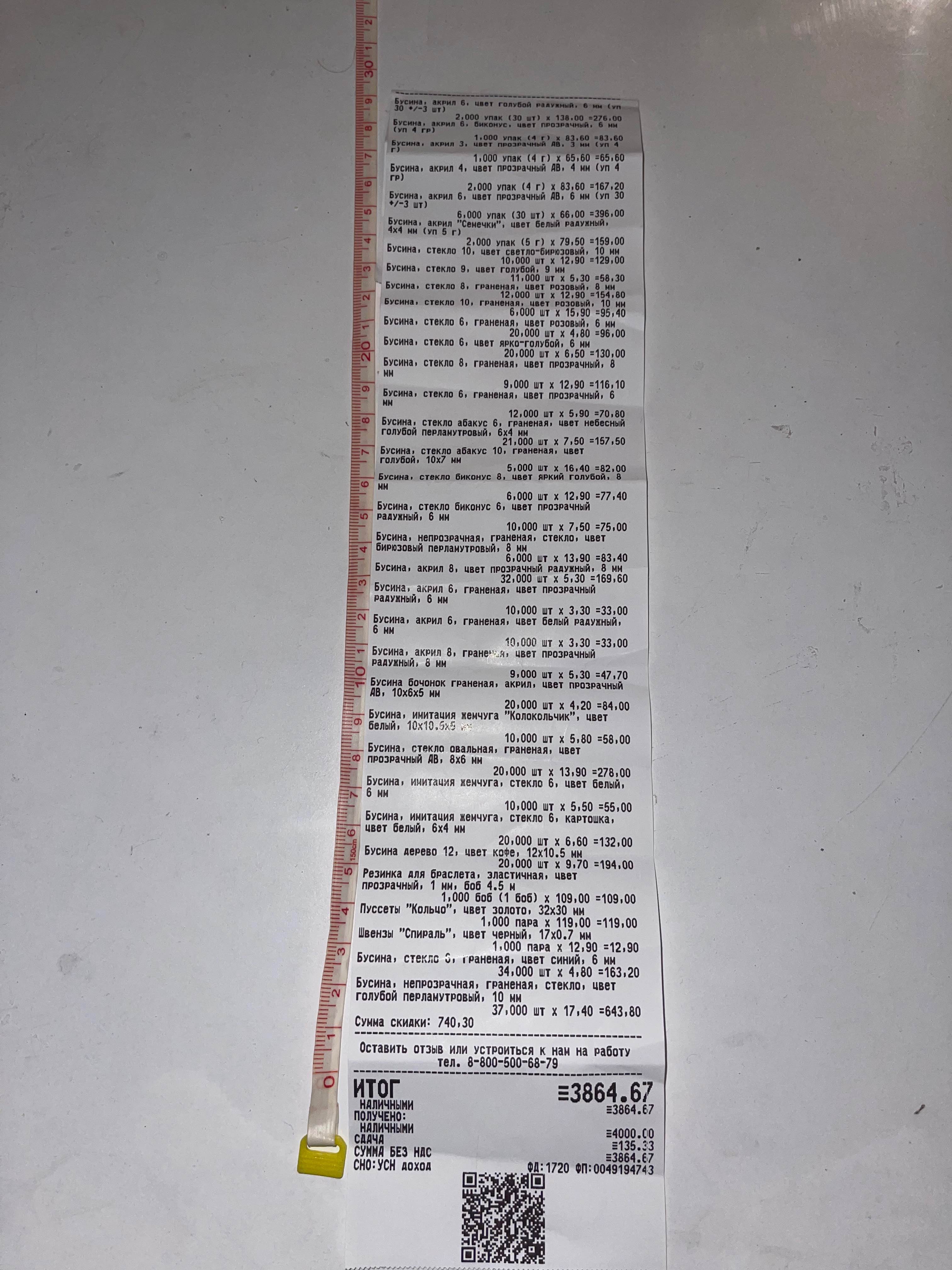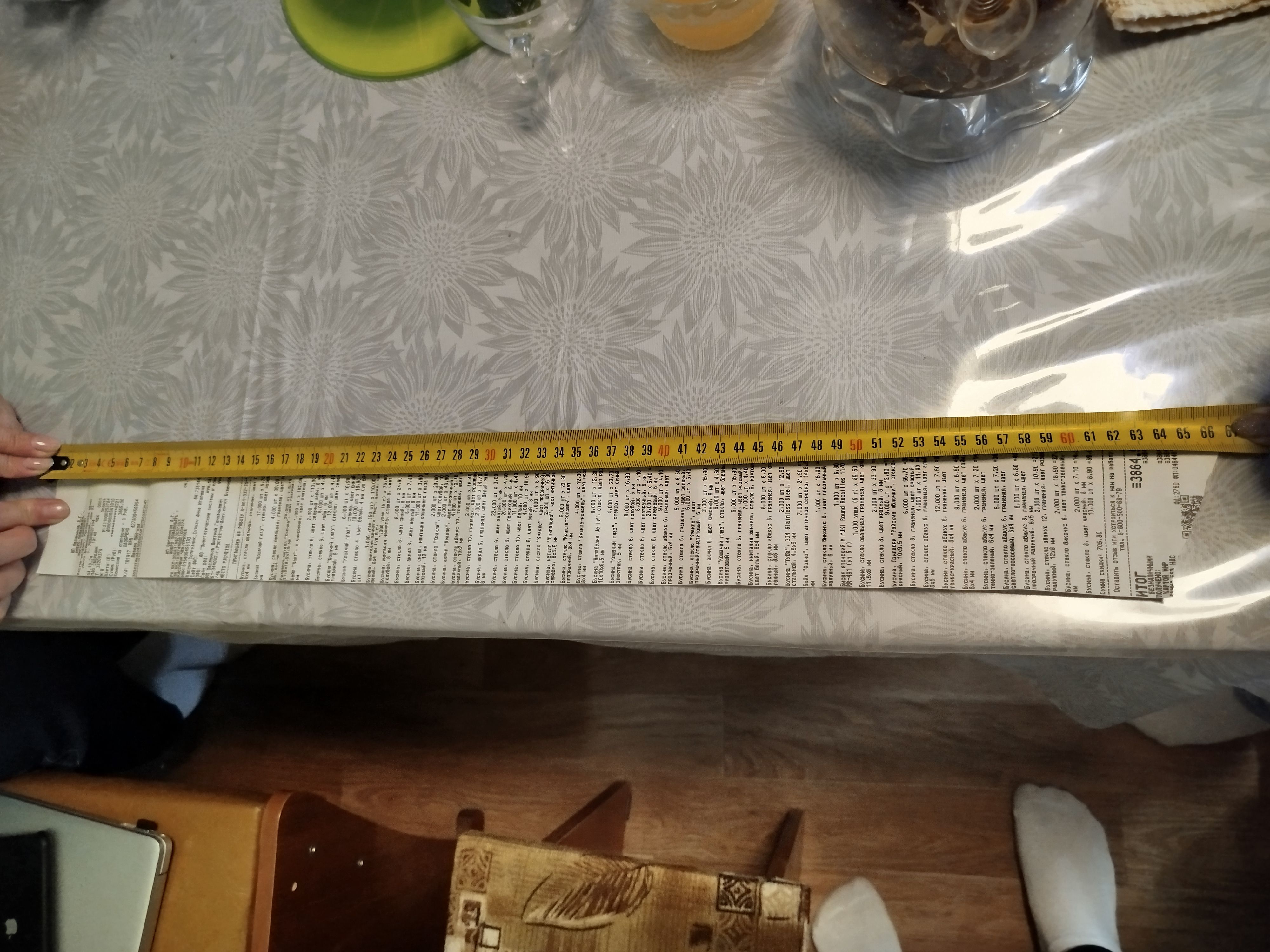 04.07.2024, Санкт-Петербург, магазин в ТД “Купца Яковлева”, Мукушева Анастасия, чек длиной 113 см https://vk.com/id152871170