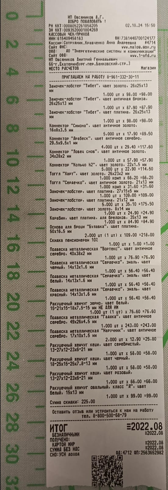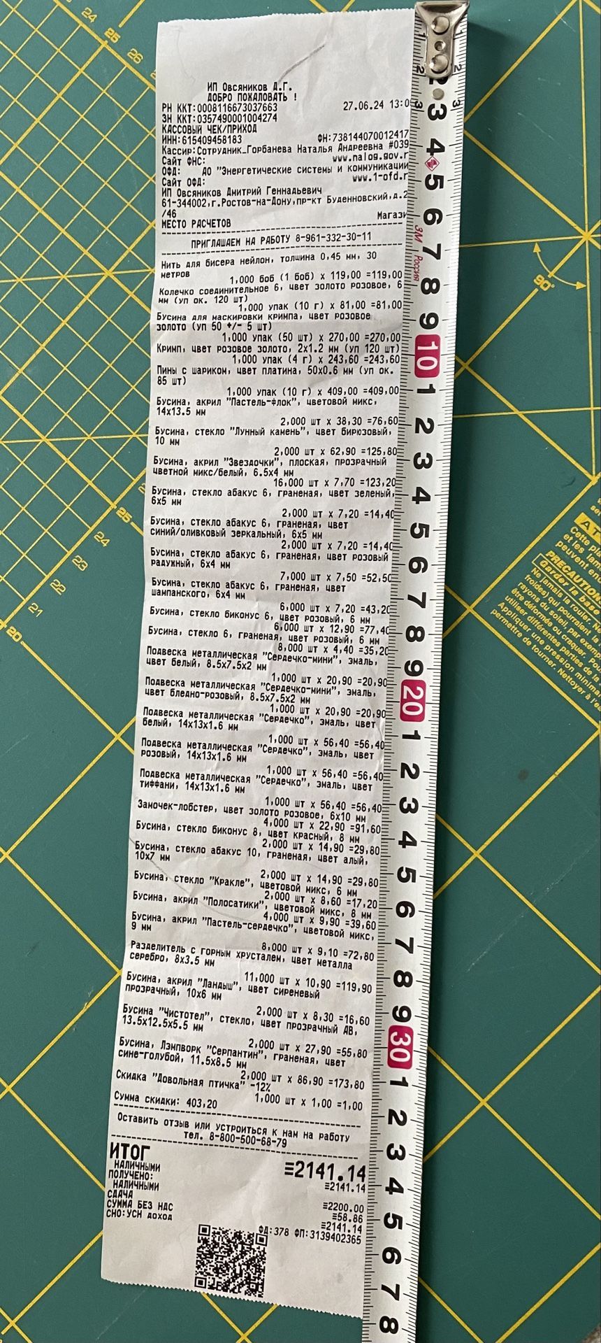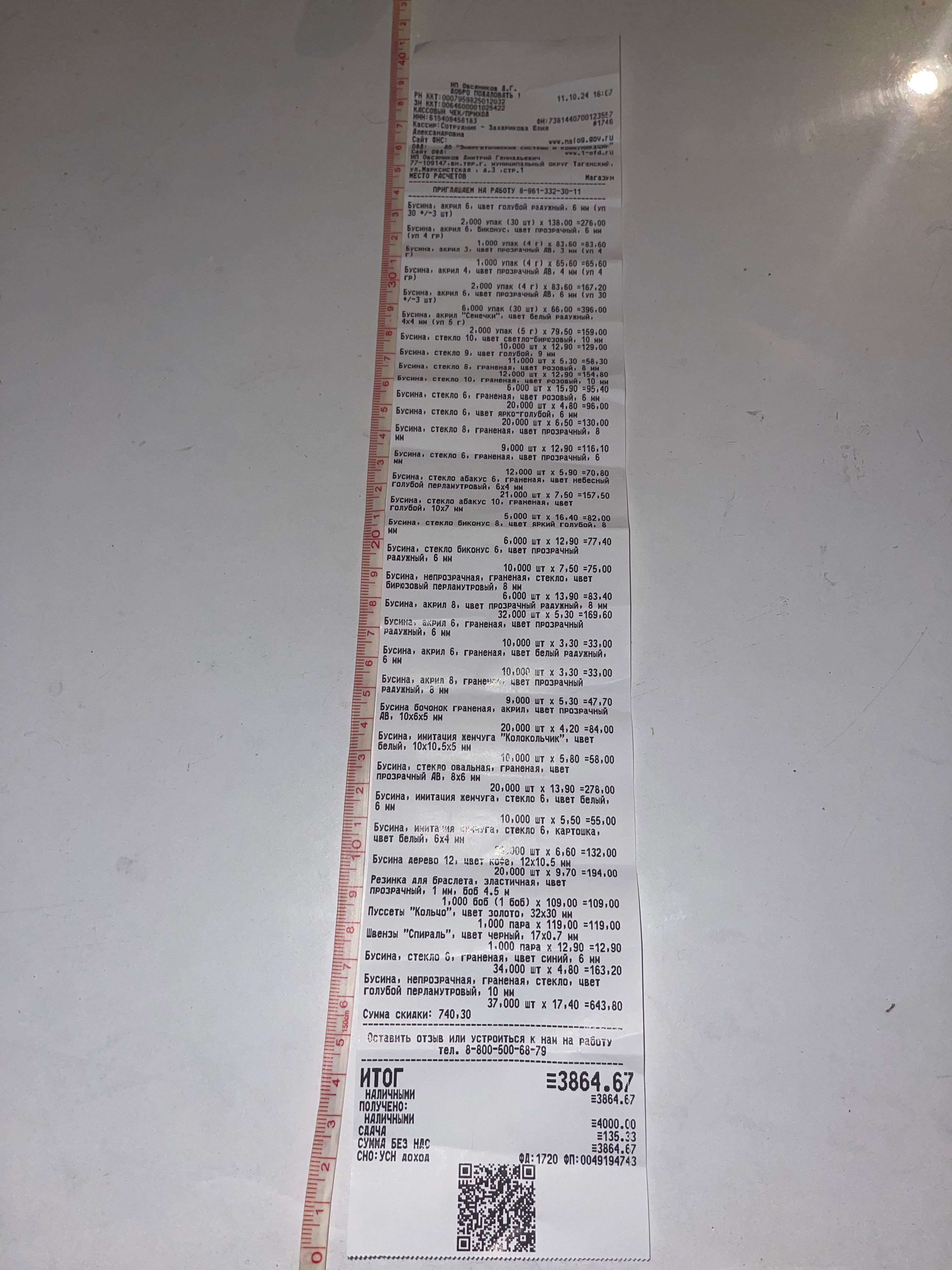 04.07.2024, Санкт-Петербург, магазин в ТД “Купца Яковлева”, Мукушева Анастасия, чек длиной 113 см https://vk.com/id152871170