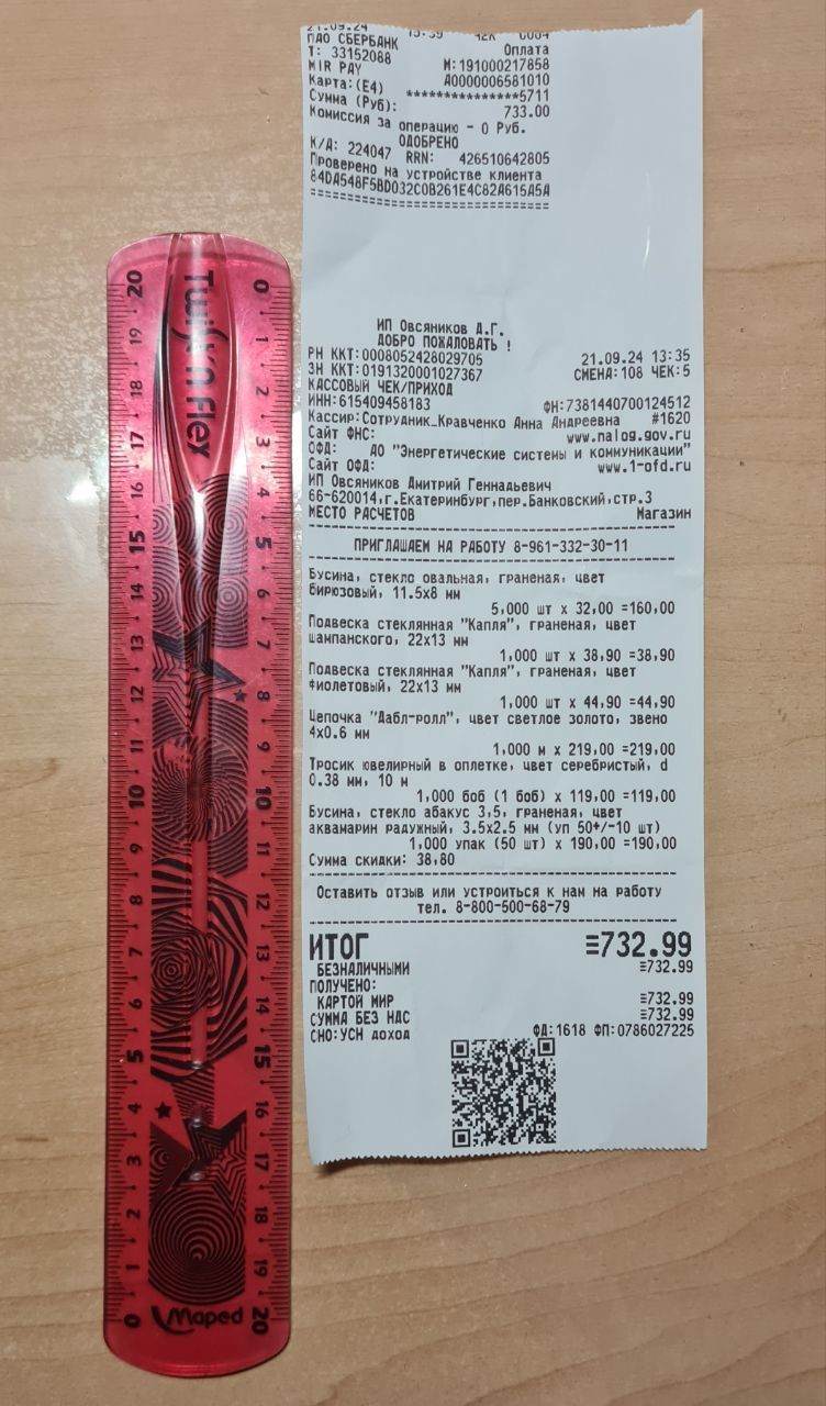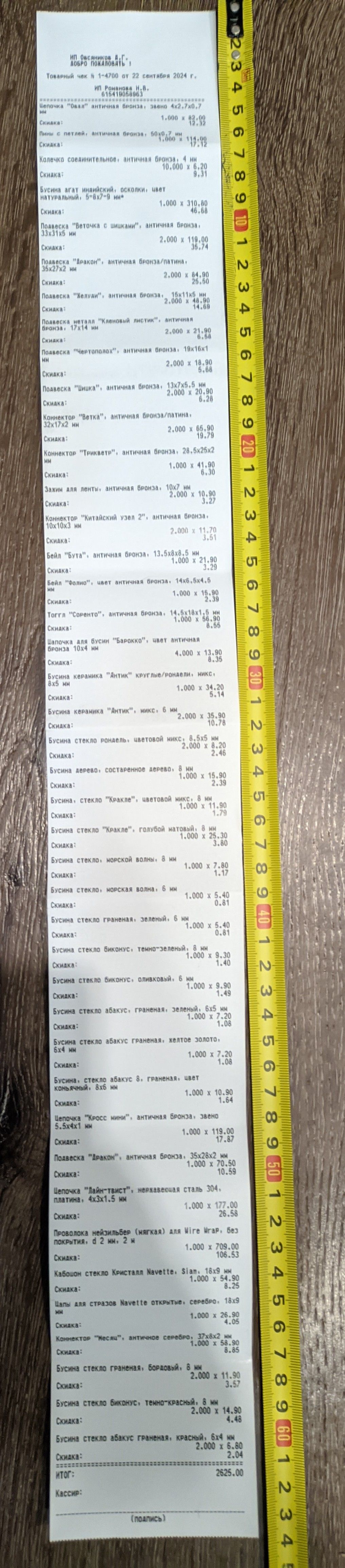 Дата покупки 12.09.2024, магазин «КафеБижу», Санкт-Петербург, ул.Садовая, 38. Длина чека 41,5 см https://vk.com/id262551077