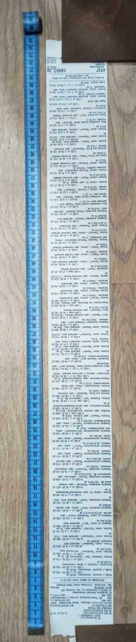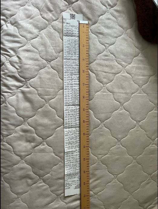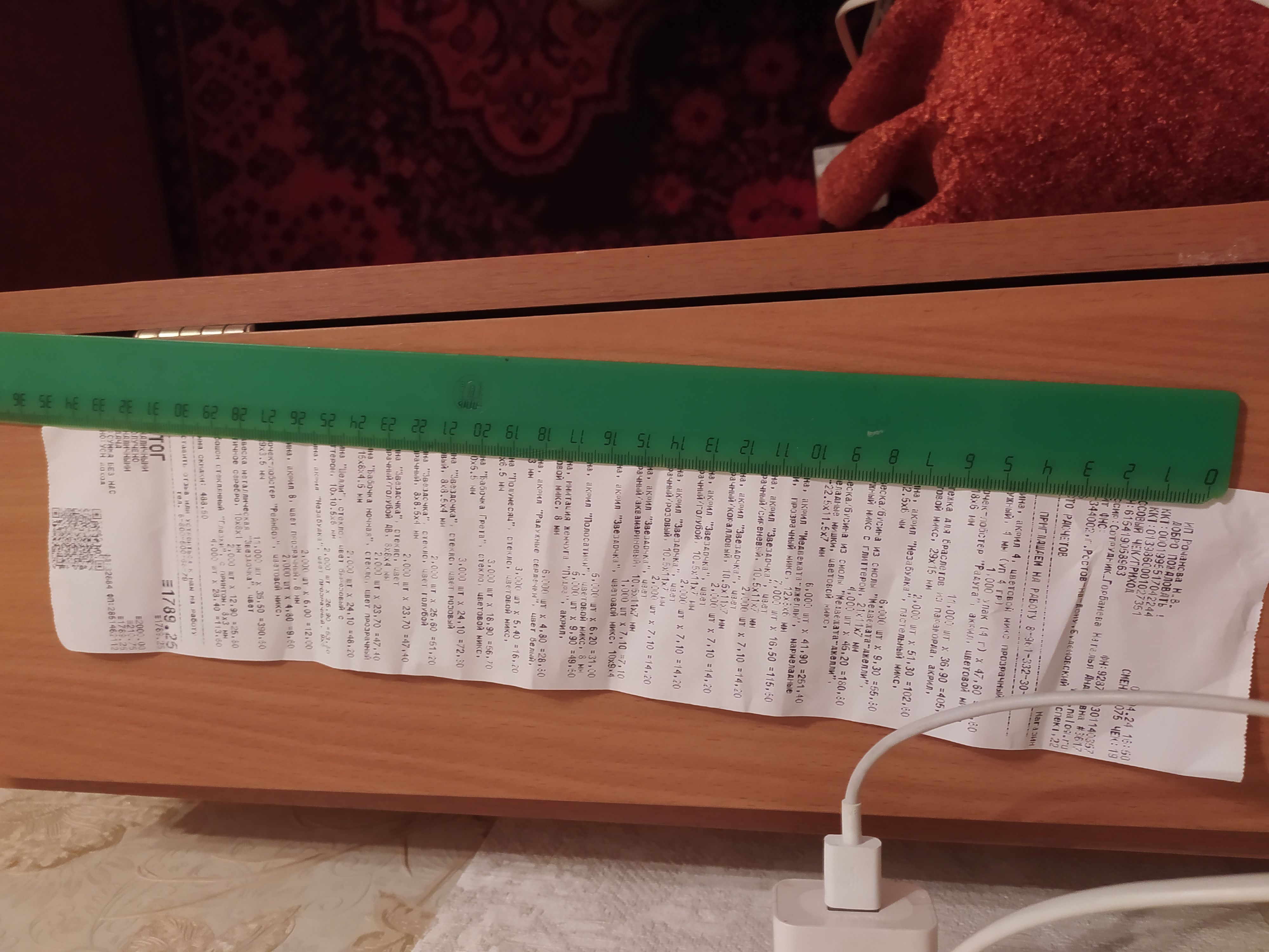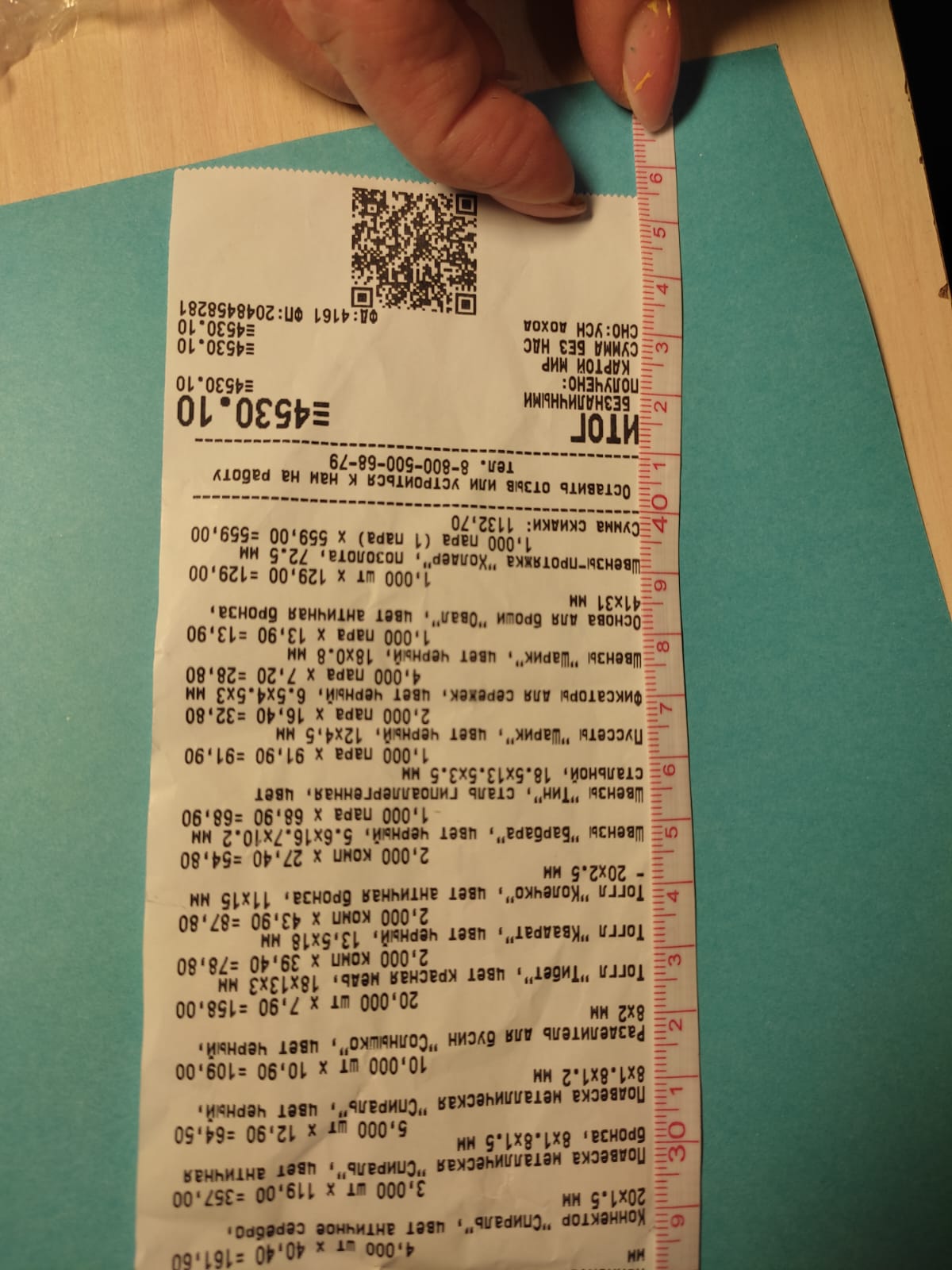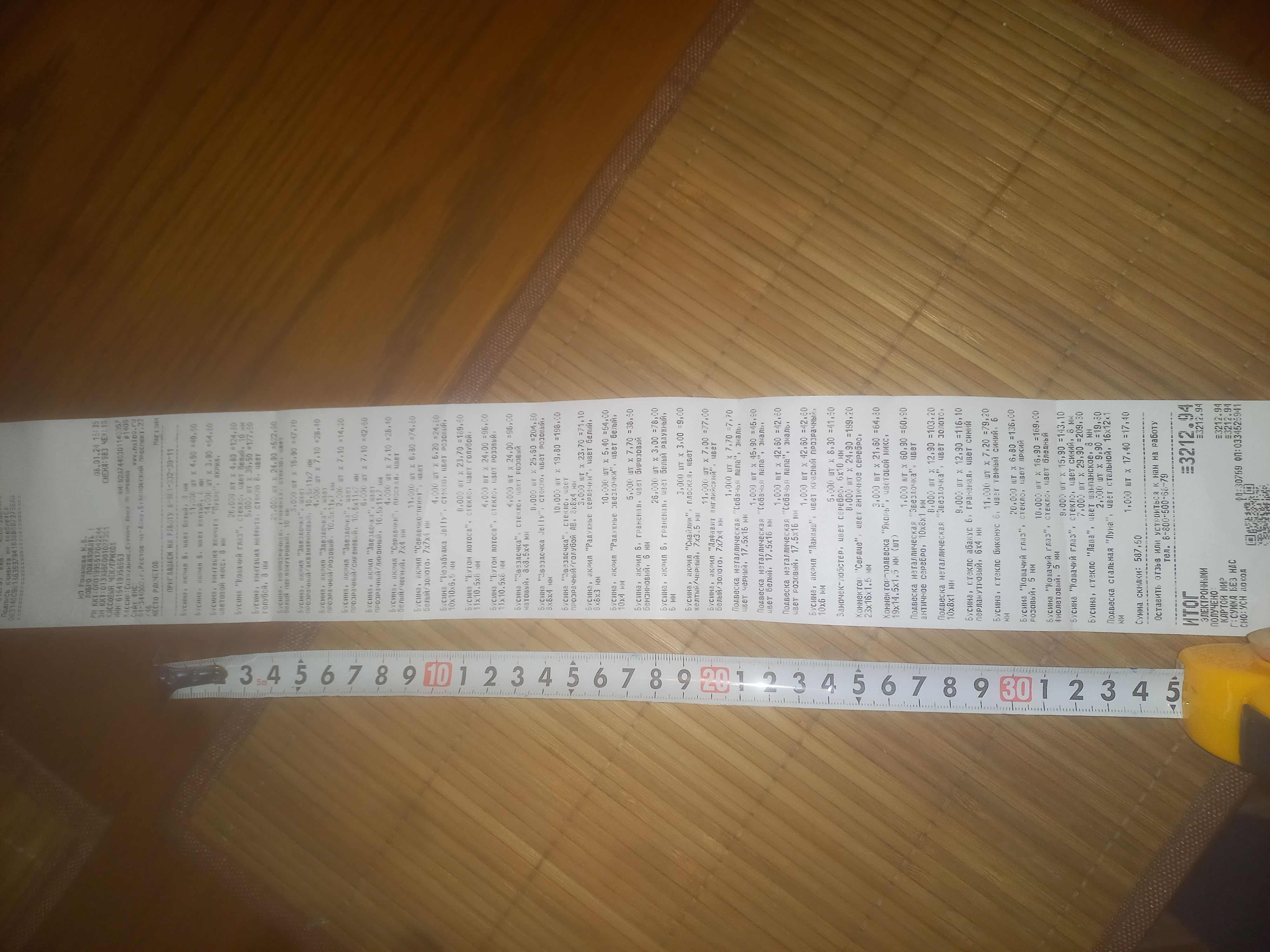 2. Измерьте длину вашего чека и сфотографируйте его рядом с линейкой или метром. Обратите внимание, что экваринговая часть чека (верхняя часть чека до обозначения ИП, печатается не всегда) и купон за покупку в конце чека не учитываются!