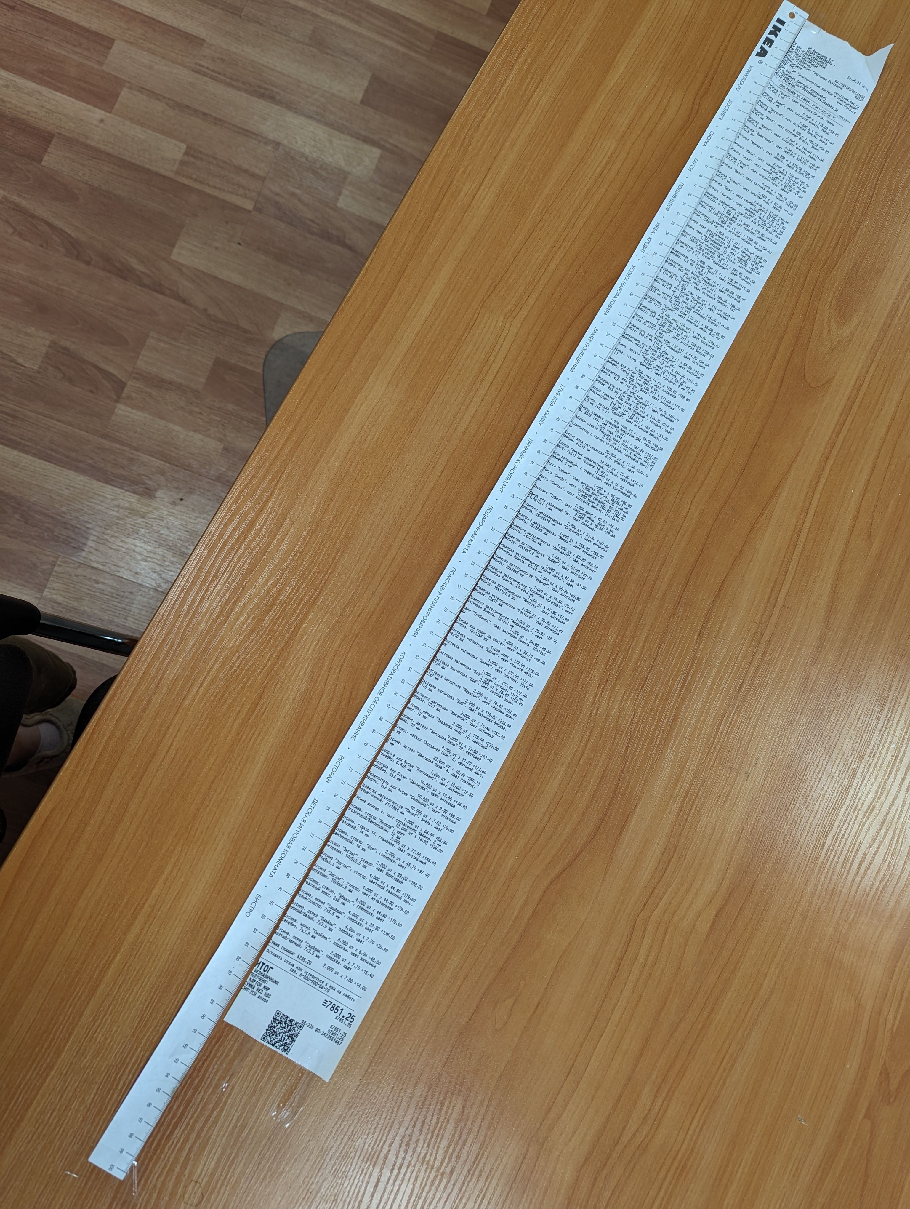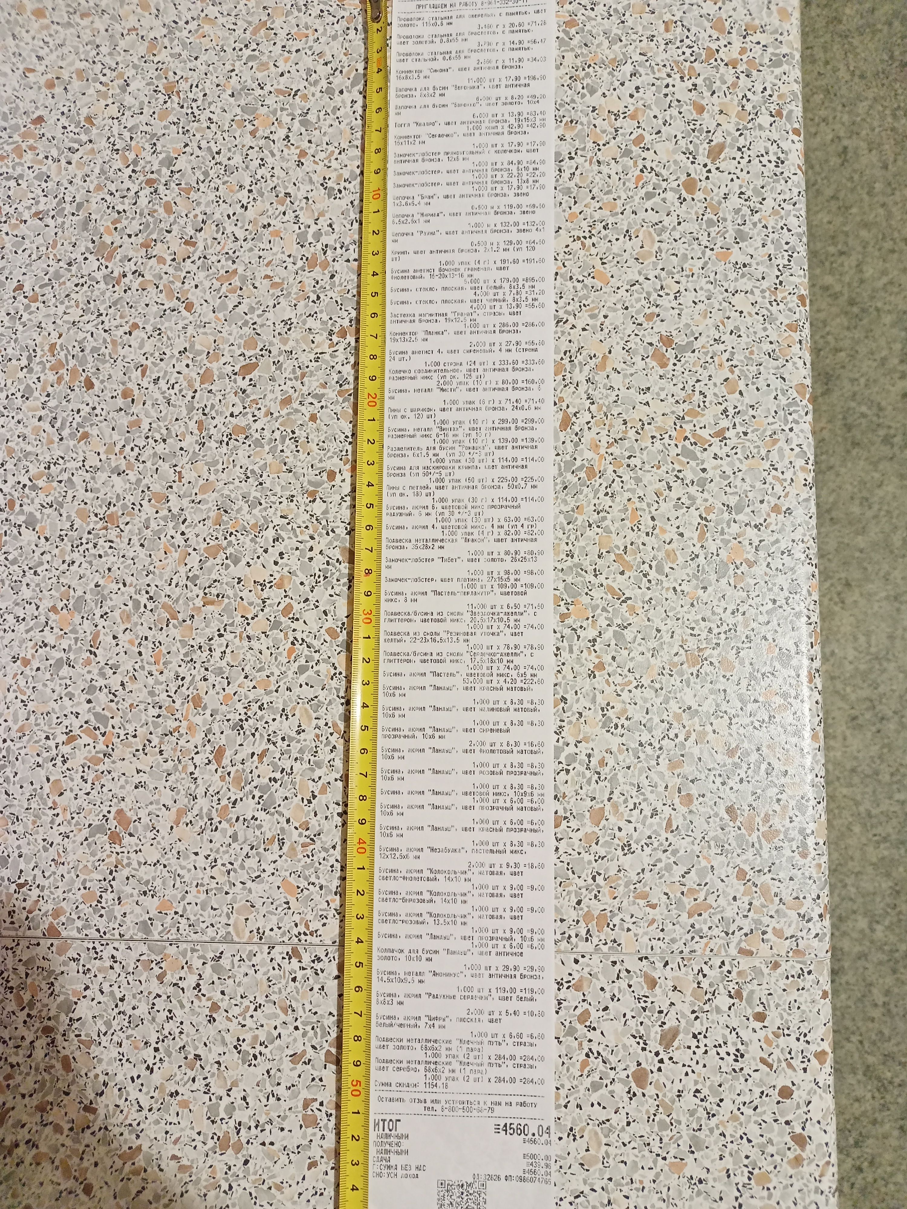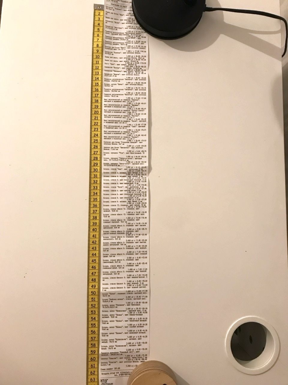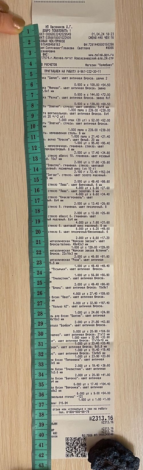 2. Измерьте длину вашего чека и сфотографируйте его рядом с линейкой или метром. Обратите внимание, что экваринговая часть чека (верхняя часть чека до обозначения ИП, печатается не всегда) и купон за покупку в конце чека не учитываются!
