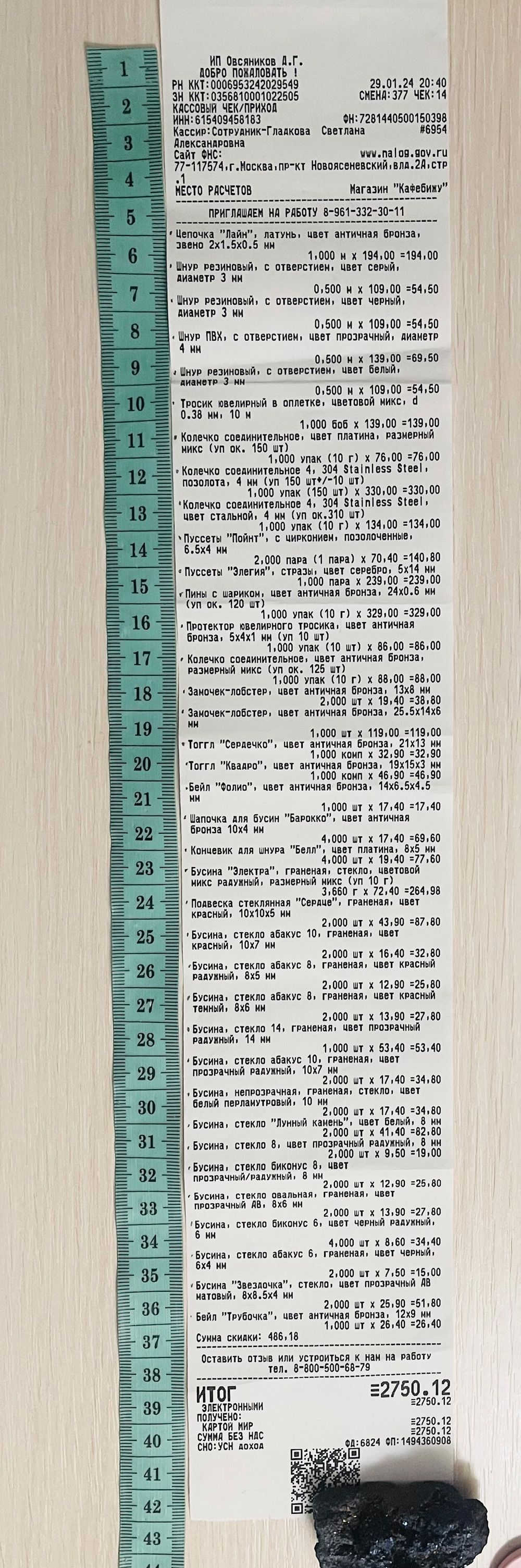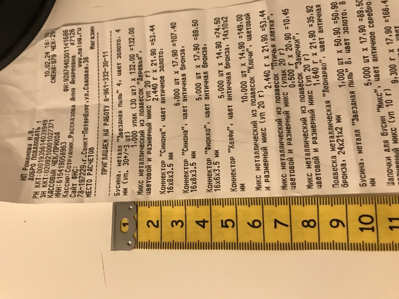 Дата покупки - 29.01.2024 Длина чека - 42 см от названия ИП Магазин - г. Москва, м. Теплый Стан, Новоясеневский проспект, вл. 2 А, стр. 1, ТЦ "Твин Плаза", 3-й этаж https://vk.com/greensoul_art