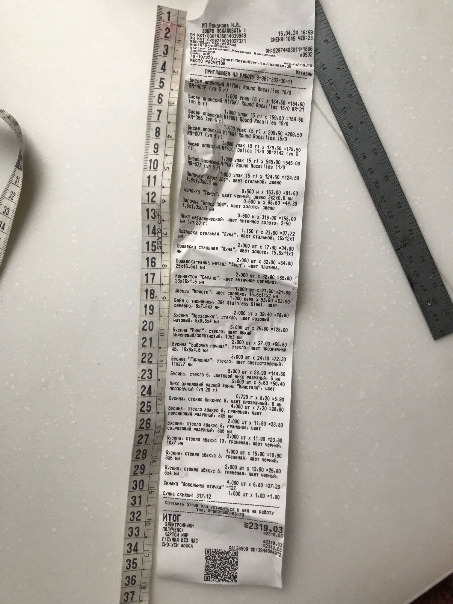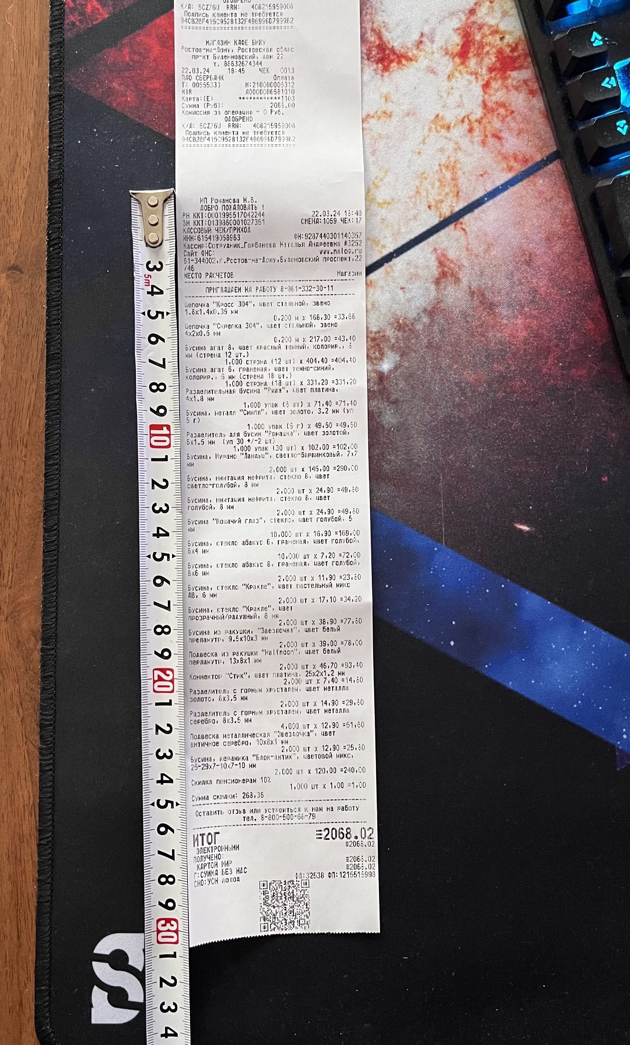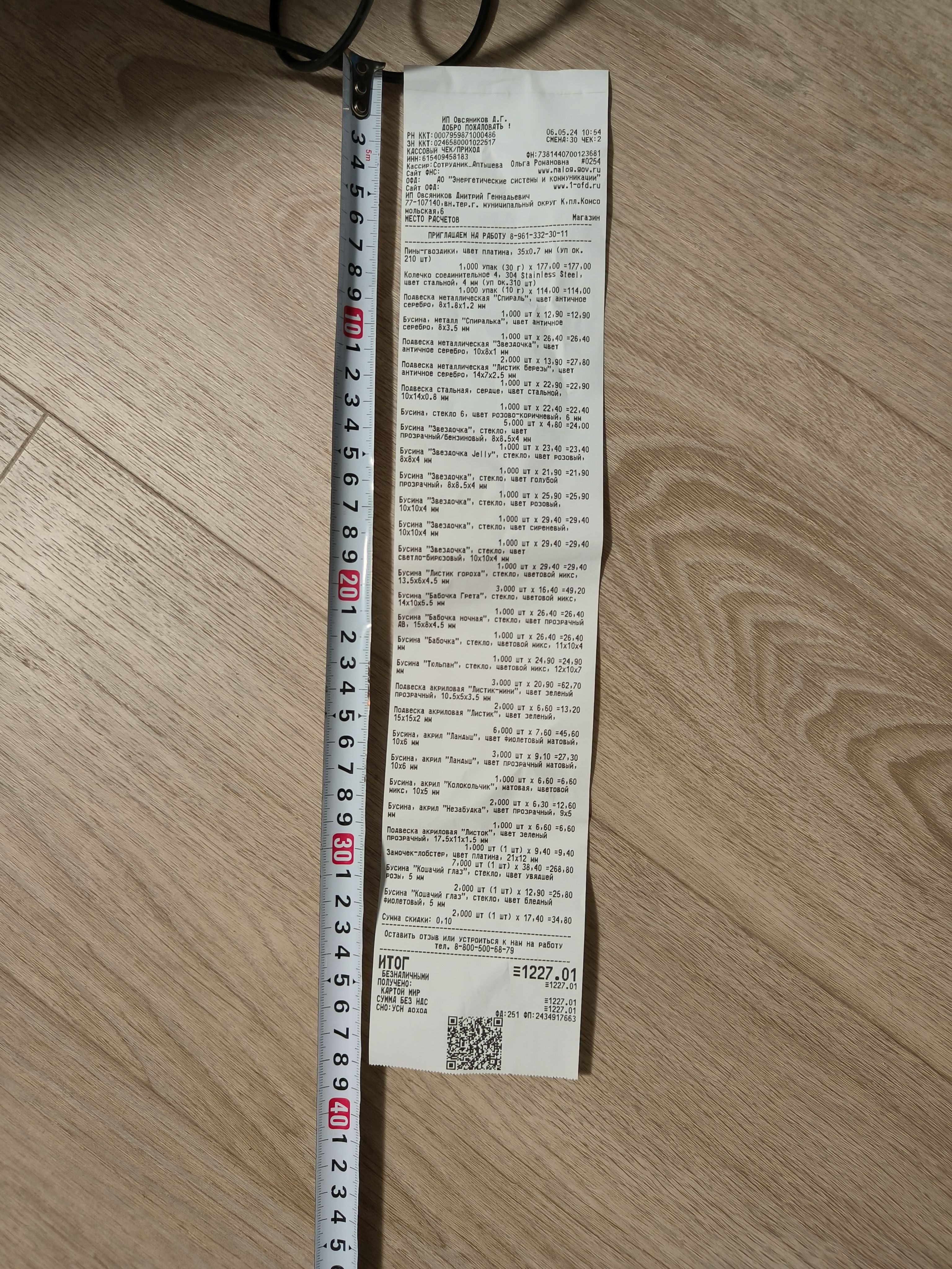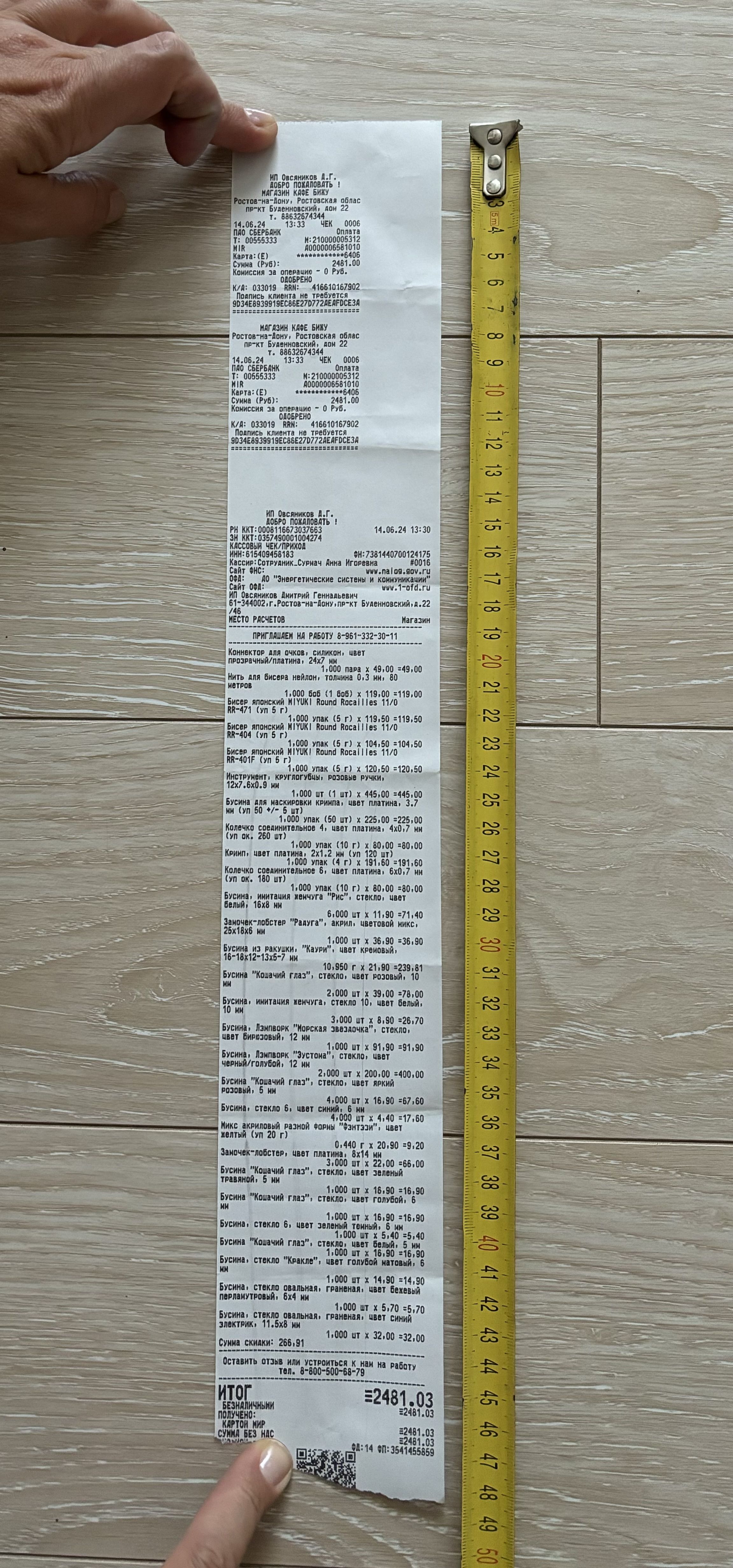 Наталья, покупка 15.05.24 в Краснодаре, длина чека общая 74см (без эквайринговой части ~67см) https://m.vk.com/lady.goldfish
