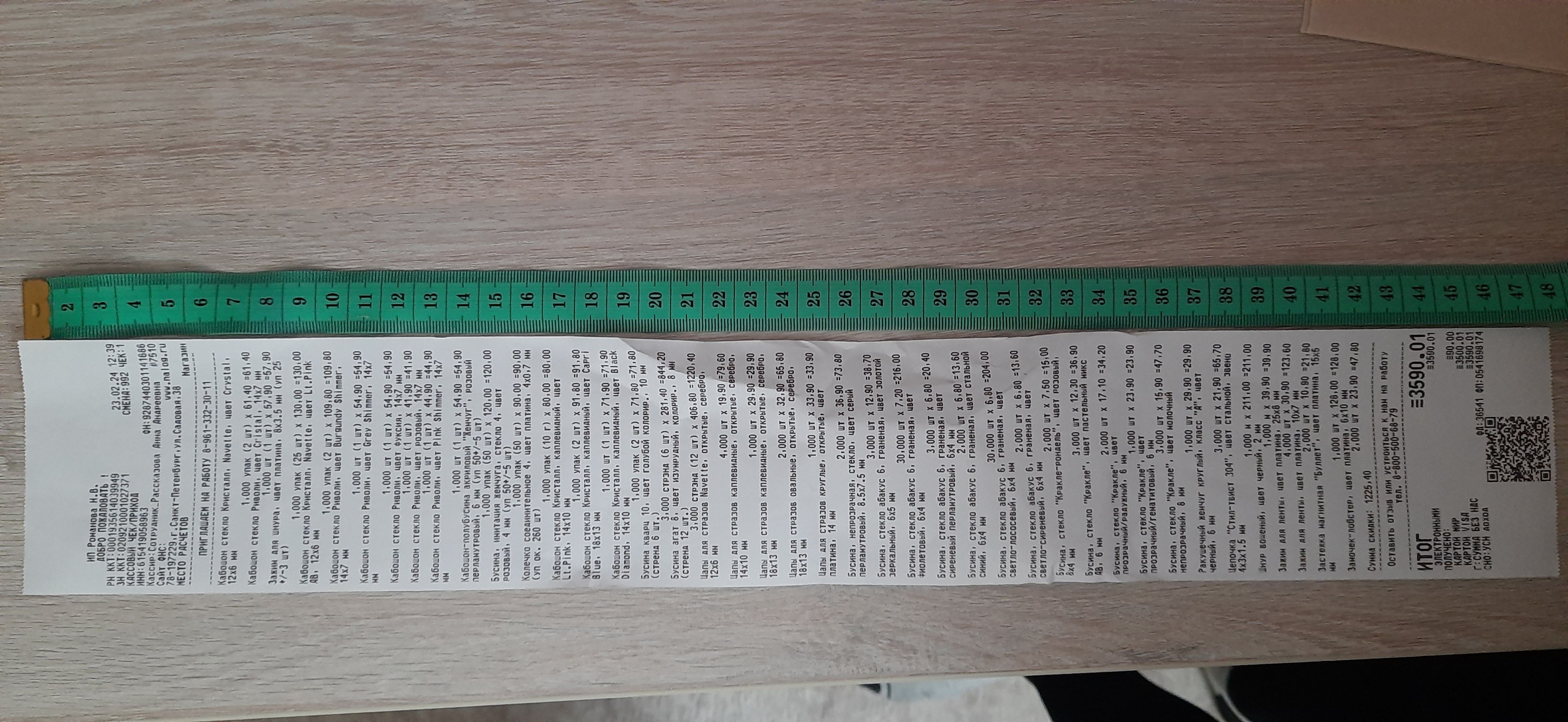 Длина чека- 47,5см. Покупка от 23.02. По адресу: г.Санкт-Петербург, ул.Садовая, д38. Почта: olga_tutunkina88@mail.ru