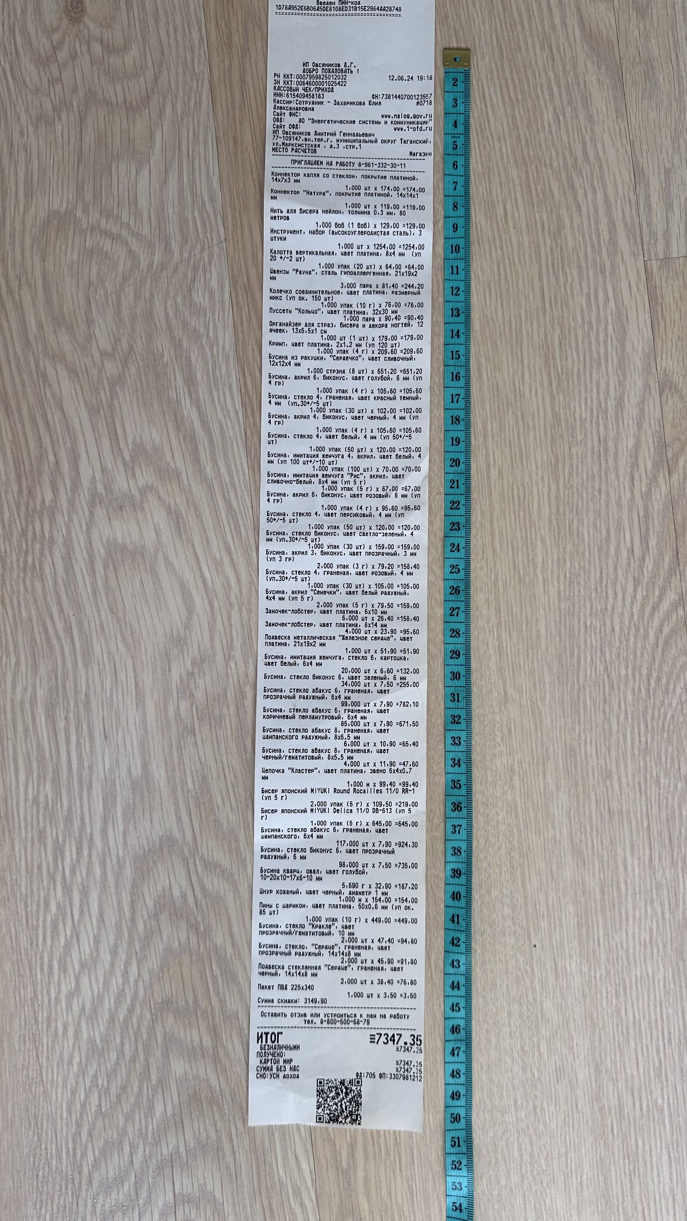 Дата покупки: 12.06.2024 Магазин: Москва, ул. Марксистская д.3 стр.1 Длина чека без экваринговой части 50 см https://vk.com/id479944020