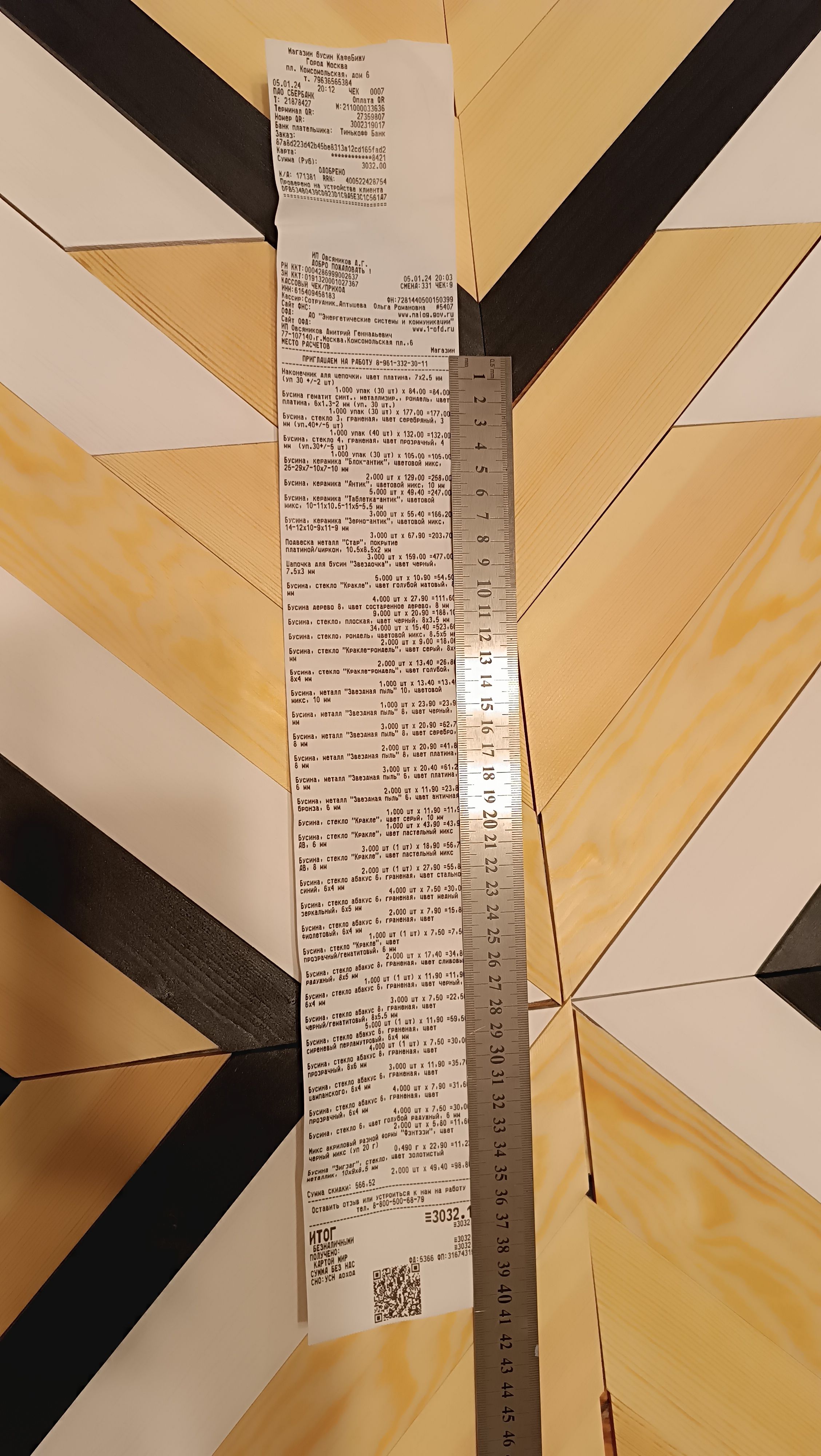 Длина чека с печатью - 46,5 см, покупала в Москве 20.02 в Универмаге метро Комсомольская. https://vk.com/id33556894